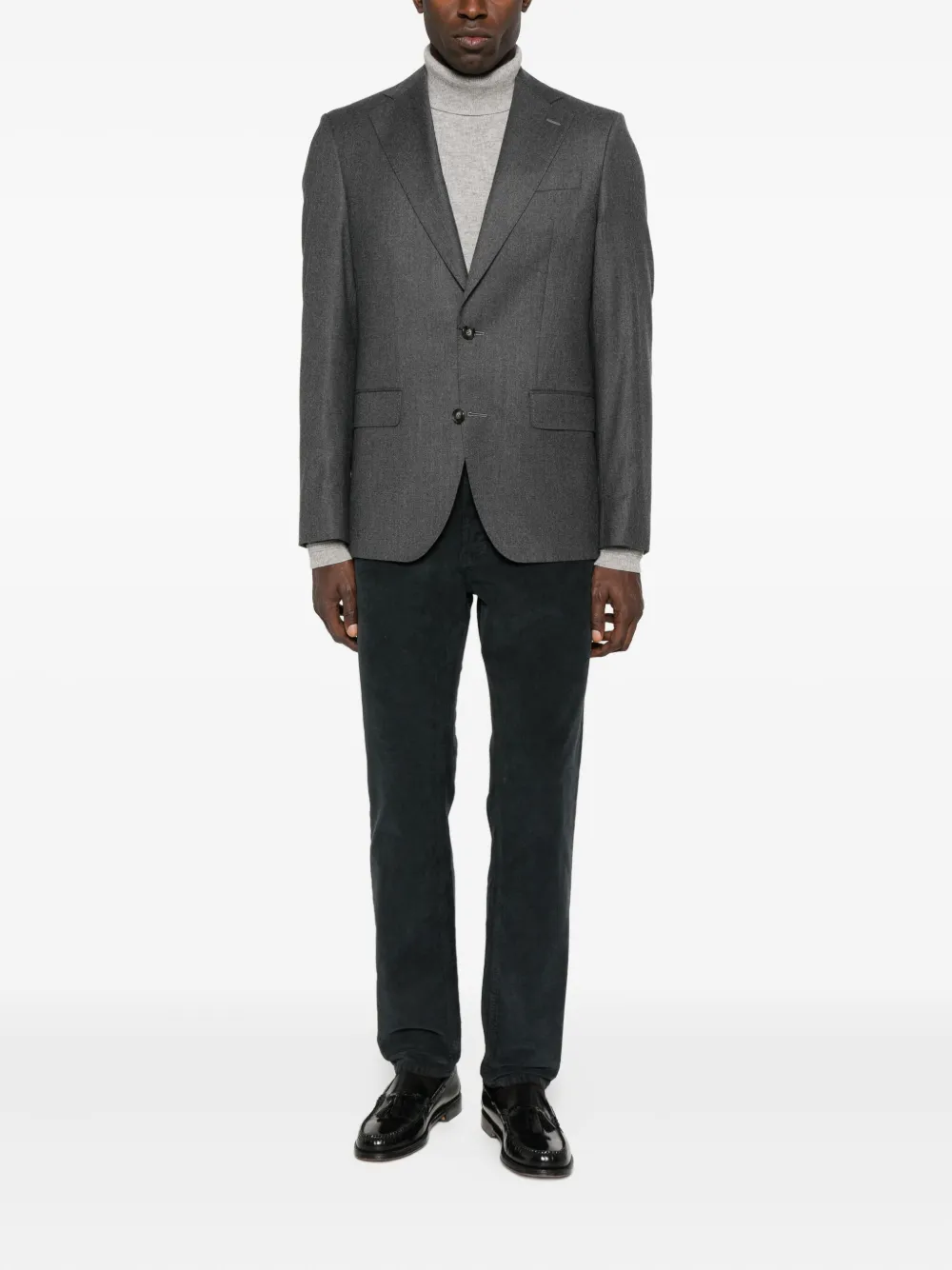 Темно-серый фланелевая текстура застежка на пуговицы спереди лацканы с вырезом накладные карманы с клапанами прямой подол