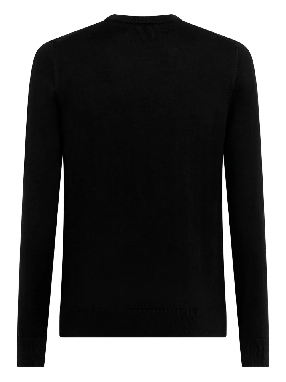 Черный круглый вырез, длинные рукава, ребристый низ, ребристые манжеты