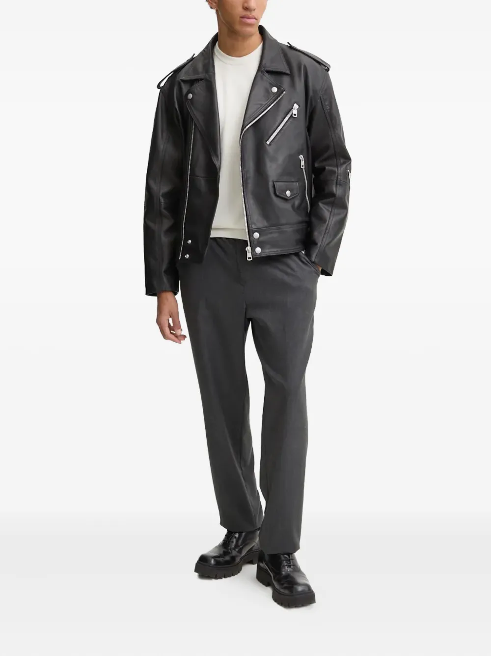 Белый круглый вырез длинные рукава небольшой нашивка-логотип ребристый низ