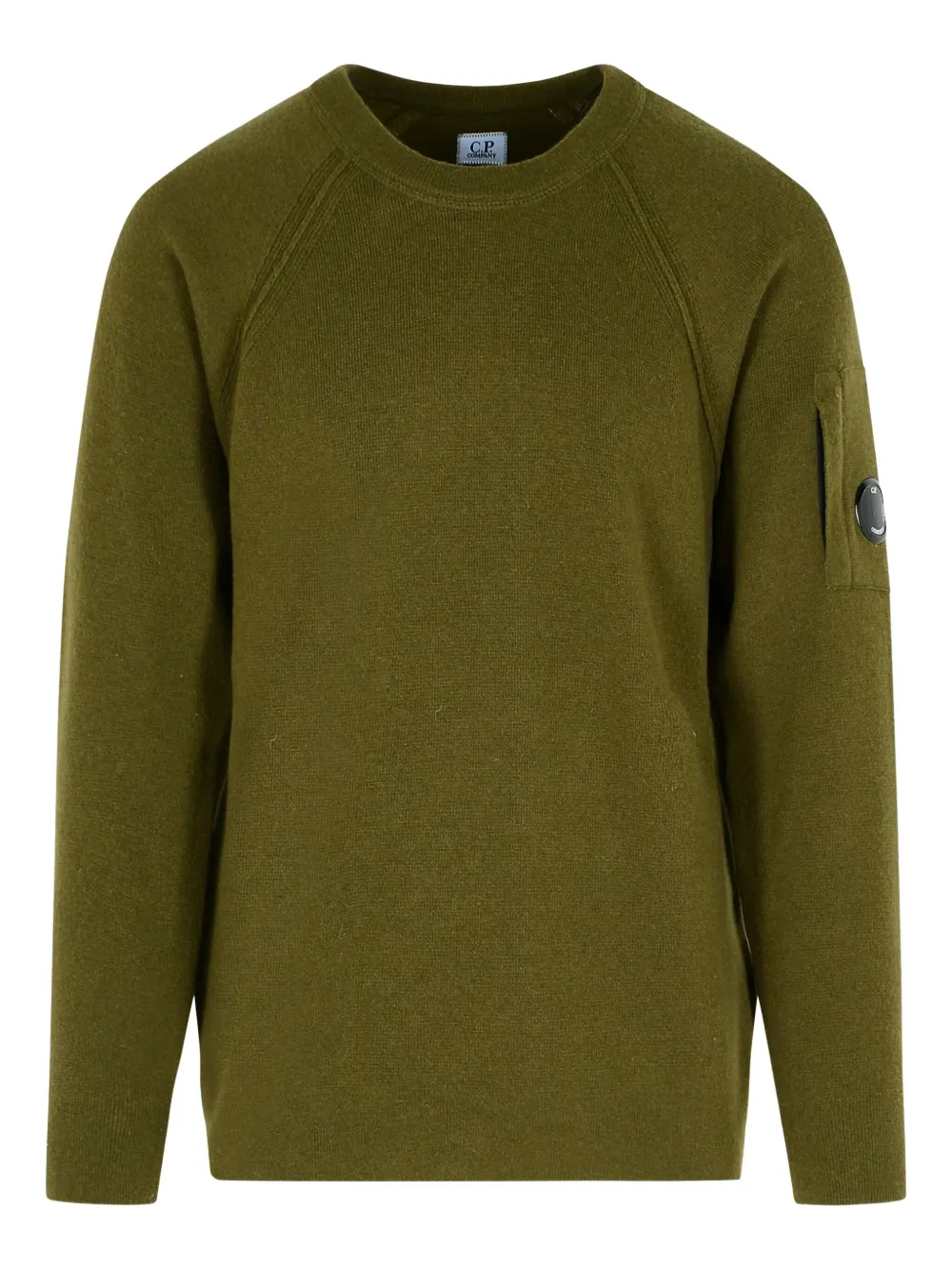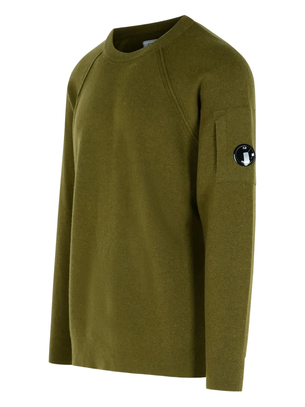 Зеленый в рубчик, с круглым вырезом рукава-реглан рукав с карманом на молнии аппликация с логотипом-линзой смесь шерсти C.P. Company рекомендует снимать все съемные аксессуары перед стиркой.