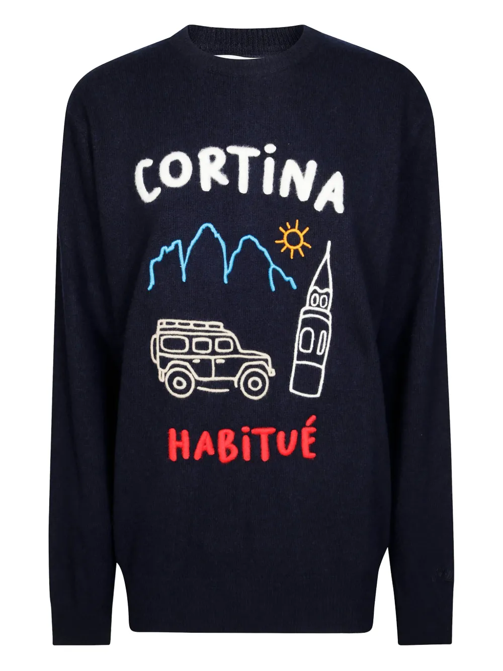 Свитер с вышивкой цапли и круглым вырезом Mc2 Saint Barth, синий 19 245₽