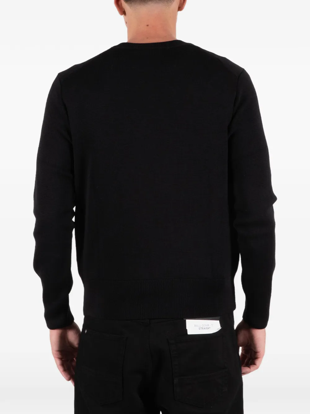 Черный цвет, вышитые детали, круглый вырез, длинные рукава, ребристые манжеты, ребристый низ
