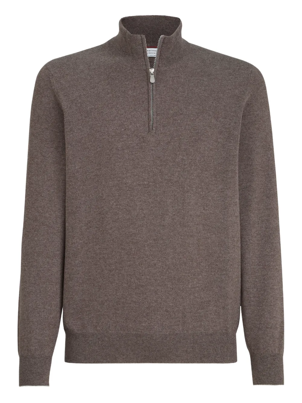 Кашемировый свитер с молнией до середины Brunello Cucinelli, коричневый