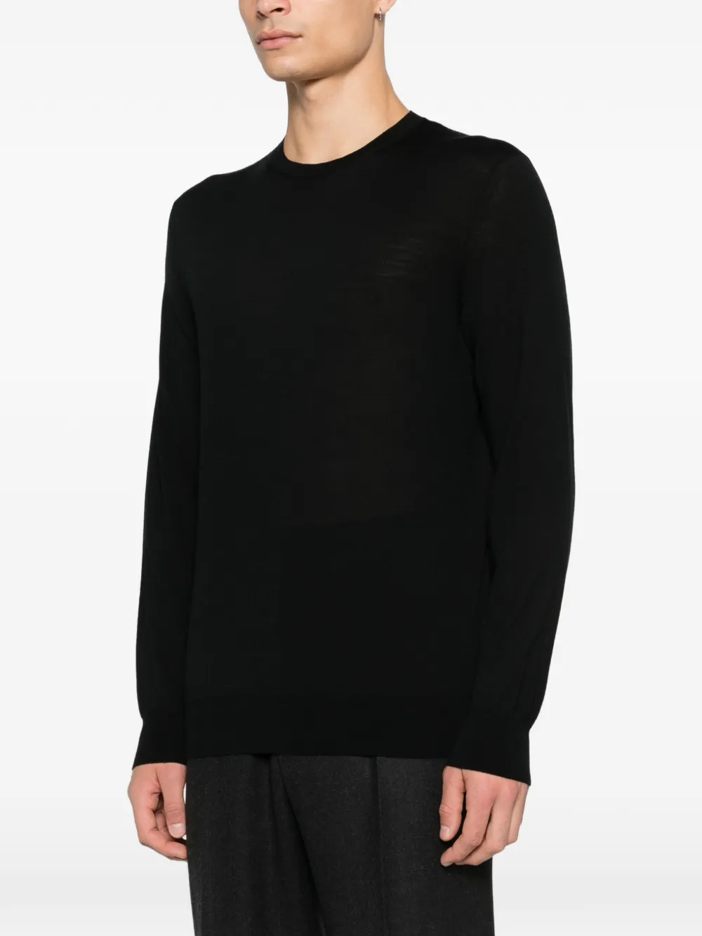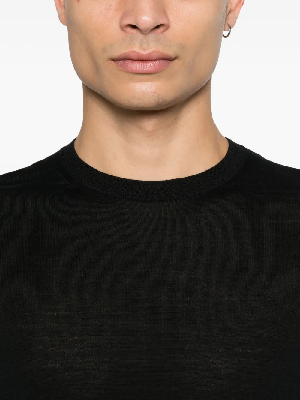 Черный круглый вырез, длинные рукава, трикотажные манжеты и нижний край