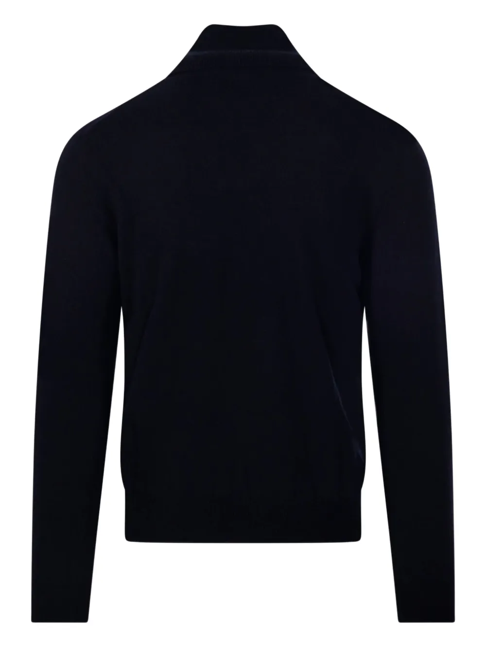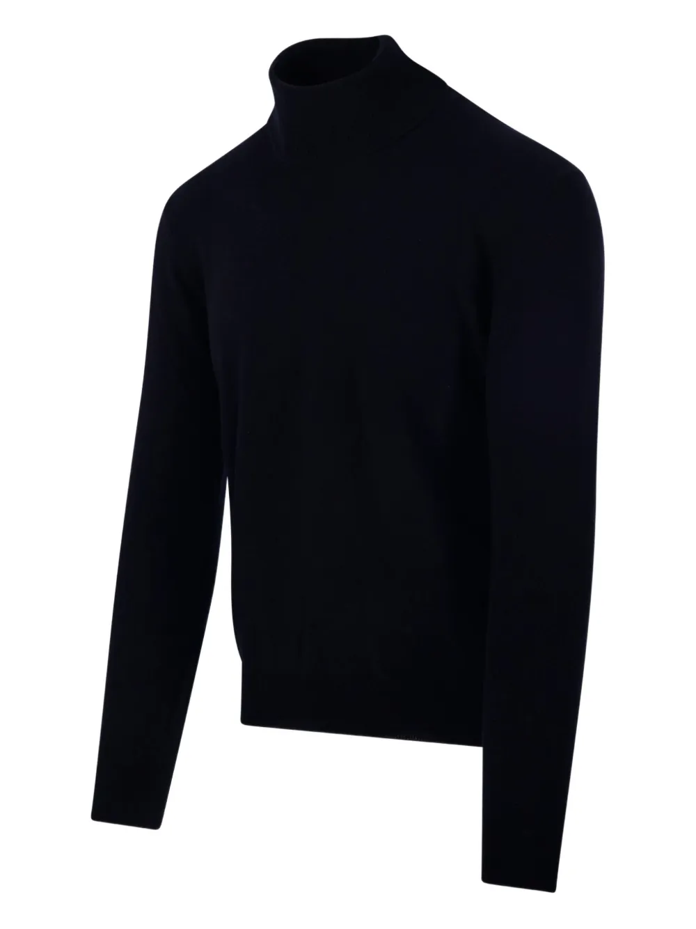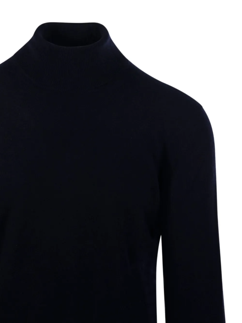 Темно-синий высокий воротник длинные рукава рубчатые манжеты и низ