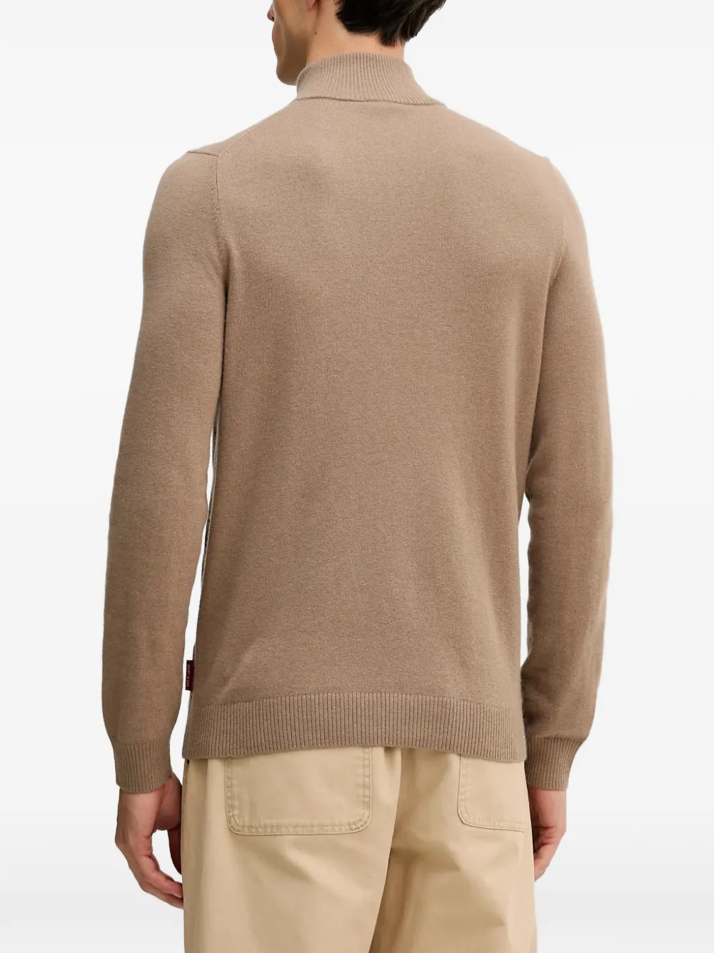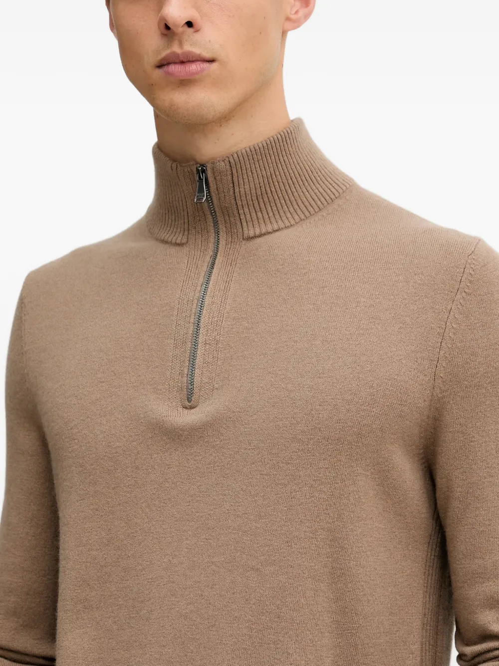 Светло-коричневый полу-молния, ребристая отделка, длинные рукава