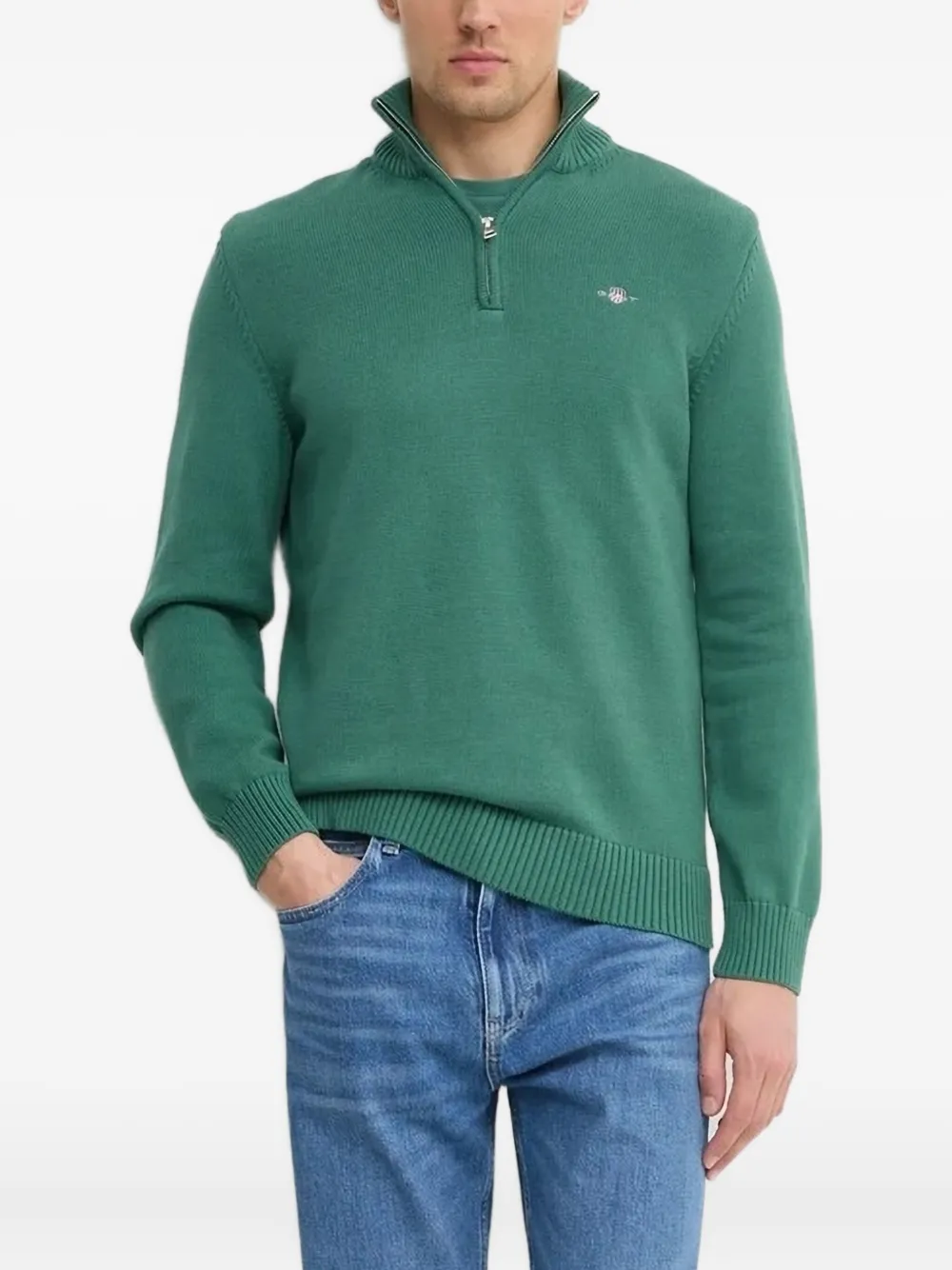 Свитер с высоким воротником на молнии Gant, зеленый