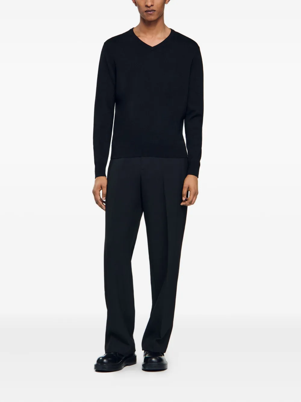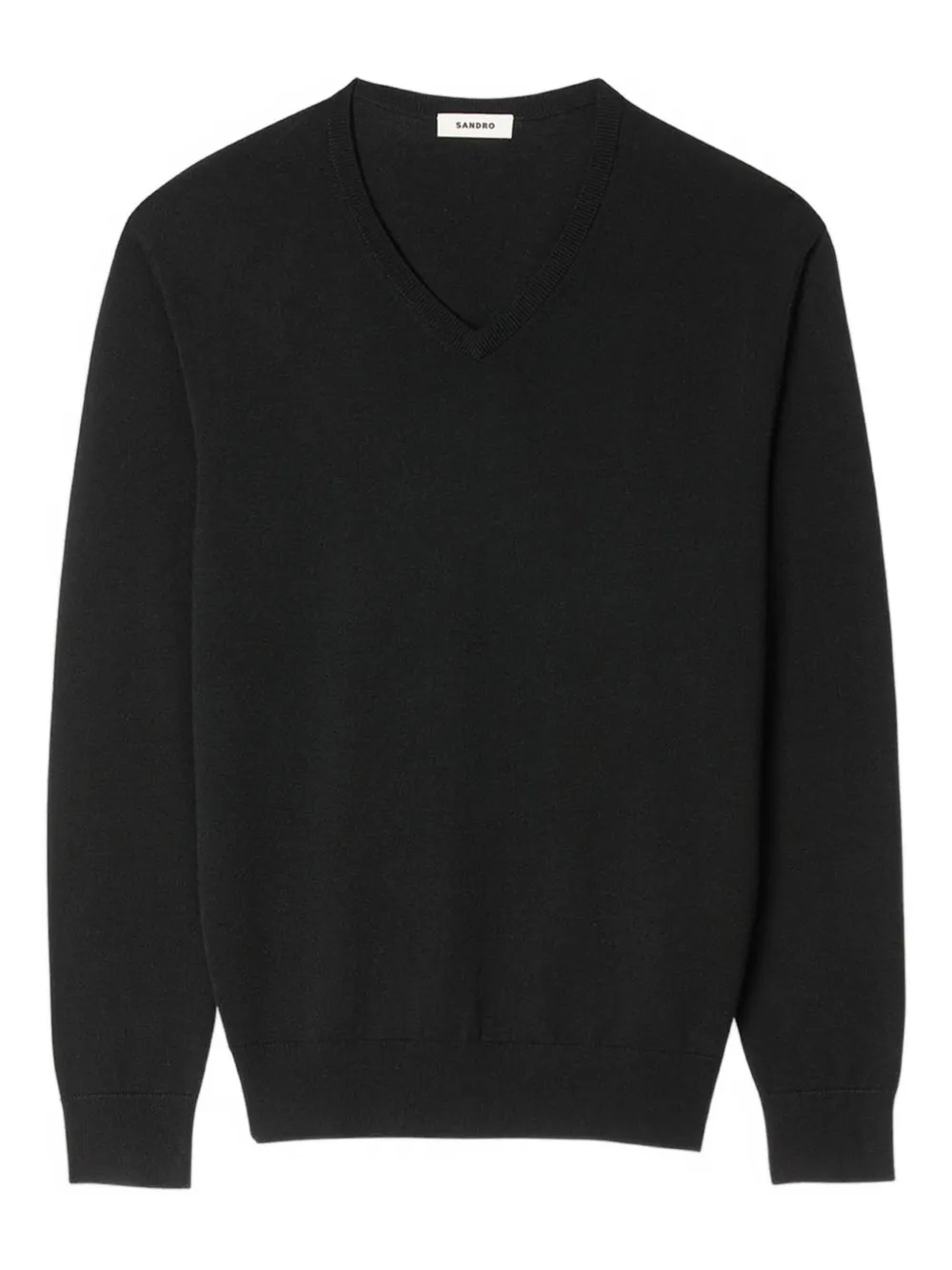 Шерстяной свитер с V-образным вырезом Sandro, черный