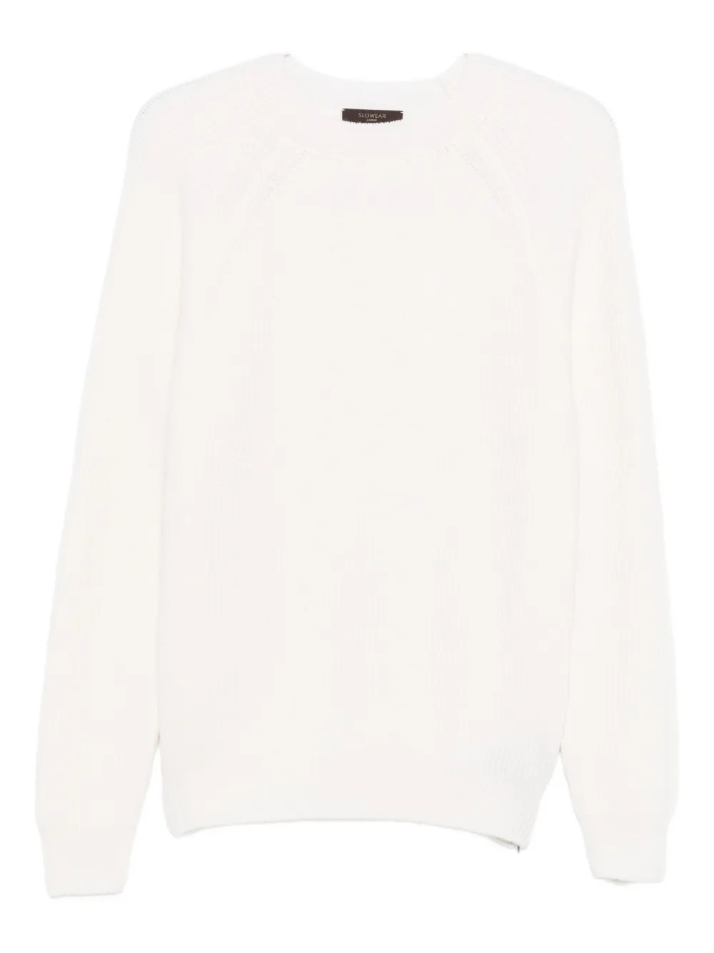 Белые рукава-реглан, рубчатая текстура, круглый вырез, длинные рукава, чистая шерсть