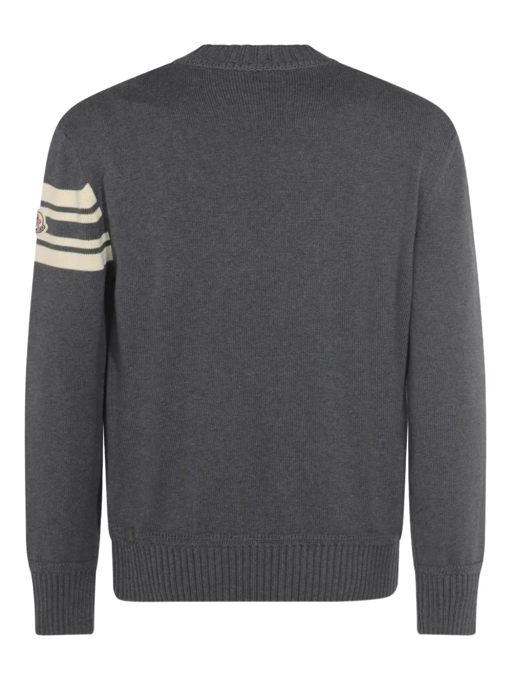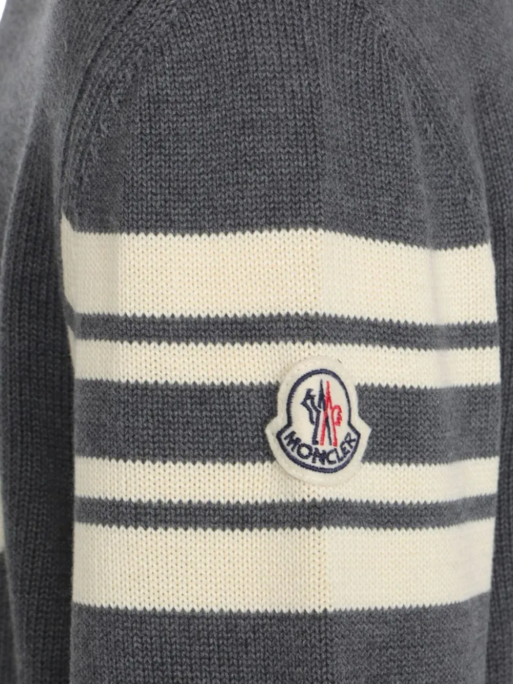 Полосатый свитер с вышитым логотипом Moncler, серый