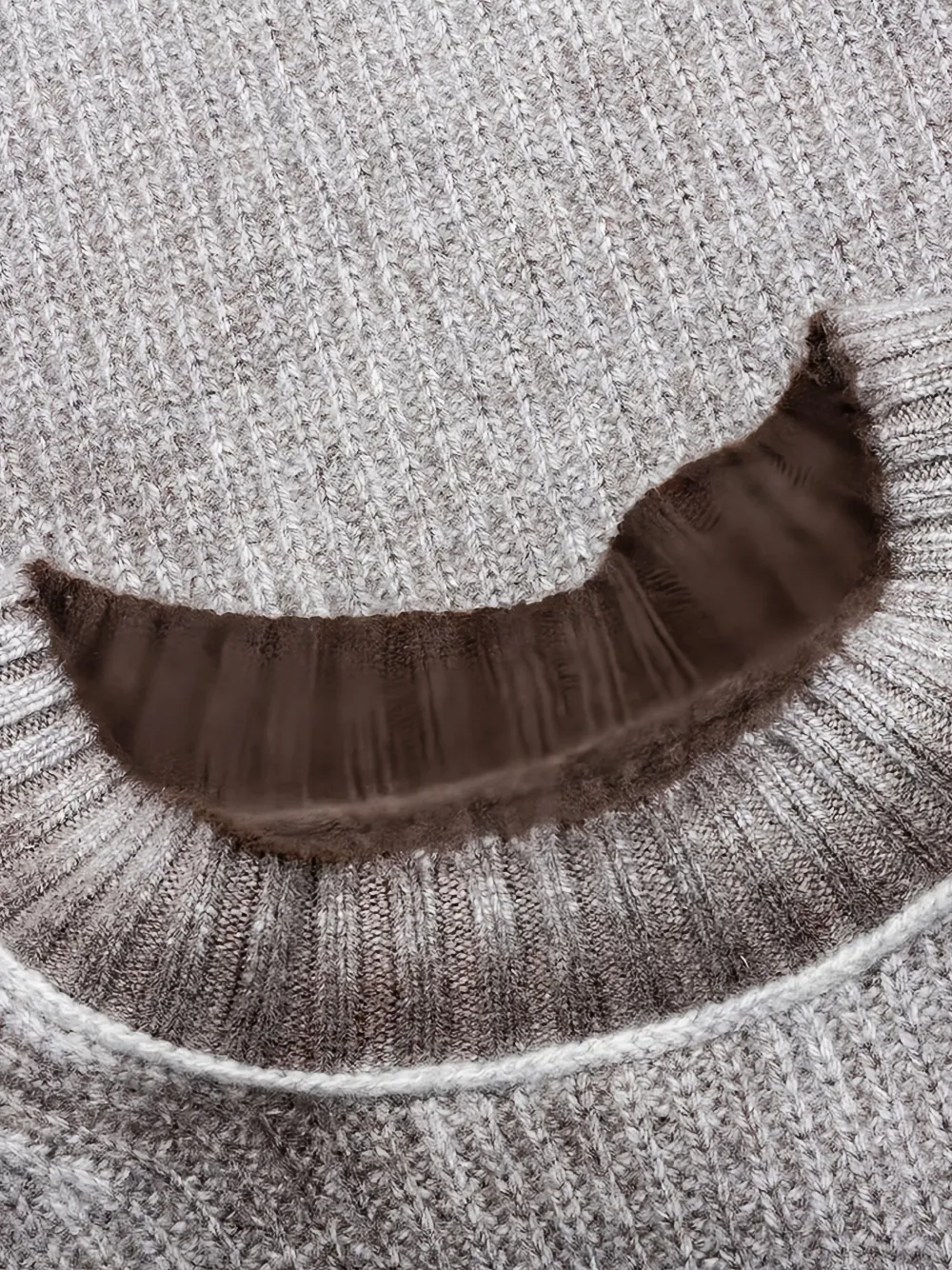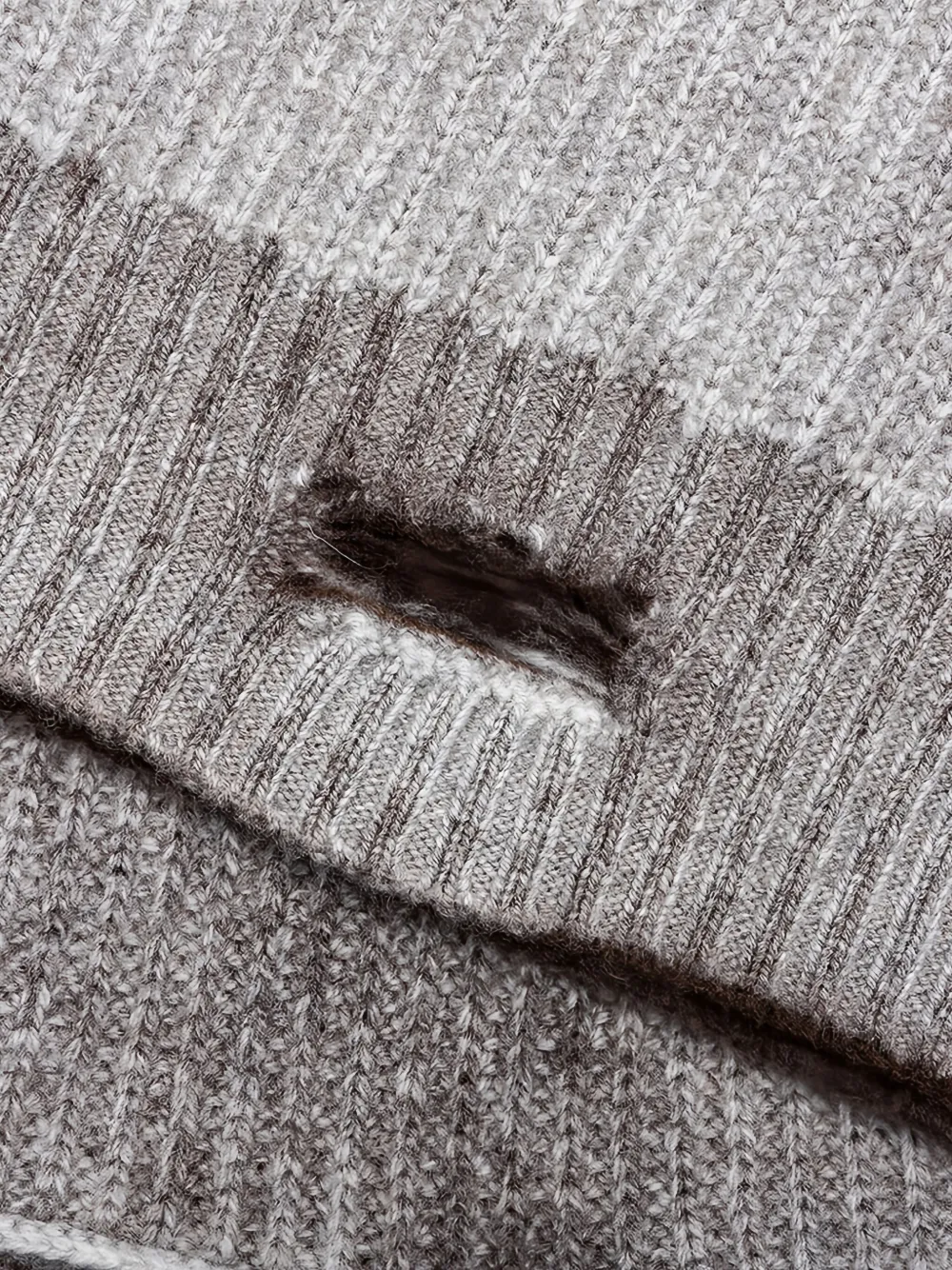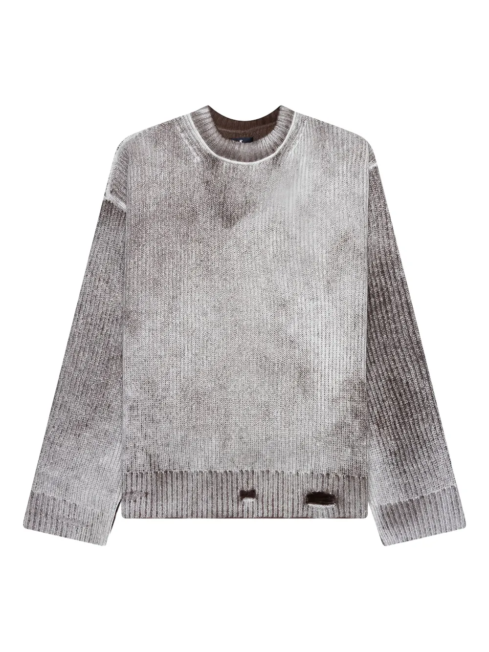 Серый градиентный эффект, ребристая вязка, круглый вырез, эффект состаренности