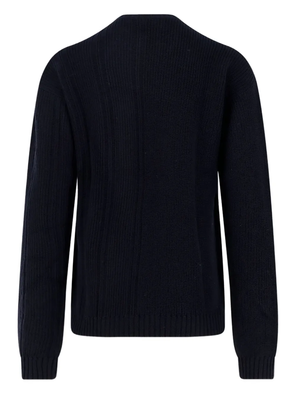 Темно-синий рубчатый трикотаж с круглым вырезом и длинными рукавами