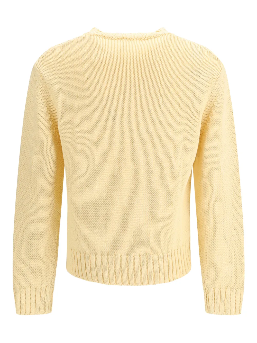 Желтый в рубчик, с круглым вырезом, длинными рукавами, ребристым низом и манжетами