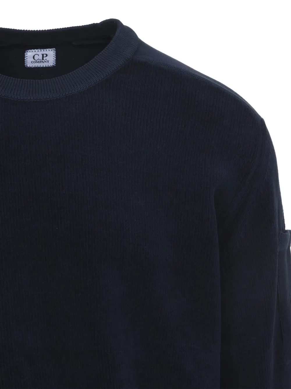 Темно-синяя толстовка с круглым вырезом, длинными рукавами, тональными строчками, нашивкой на рукаве, ребристыми краями. C.P. Company рекомендует снимать все съемные аксессуары перед стиркой.