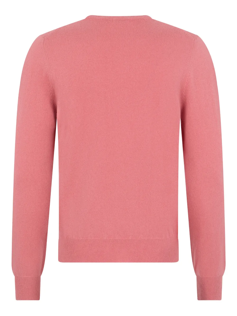 Розовый свитер с круглым вырезом, длинными рукавами, ребристыми манжетами и нижним краем