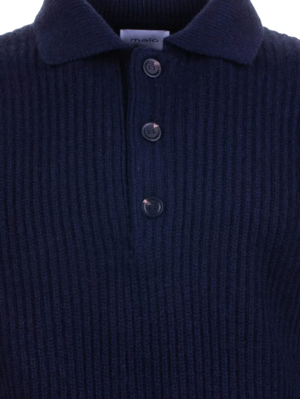 Свитер в рубчик с воротником поло Malo, синий 86 034₽