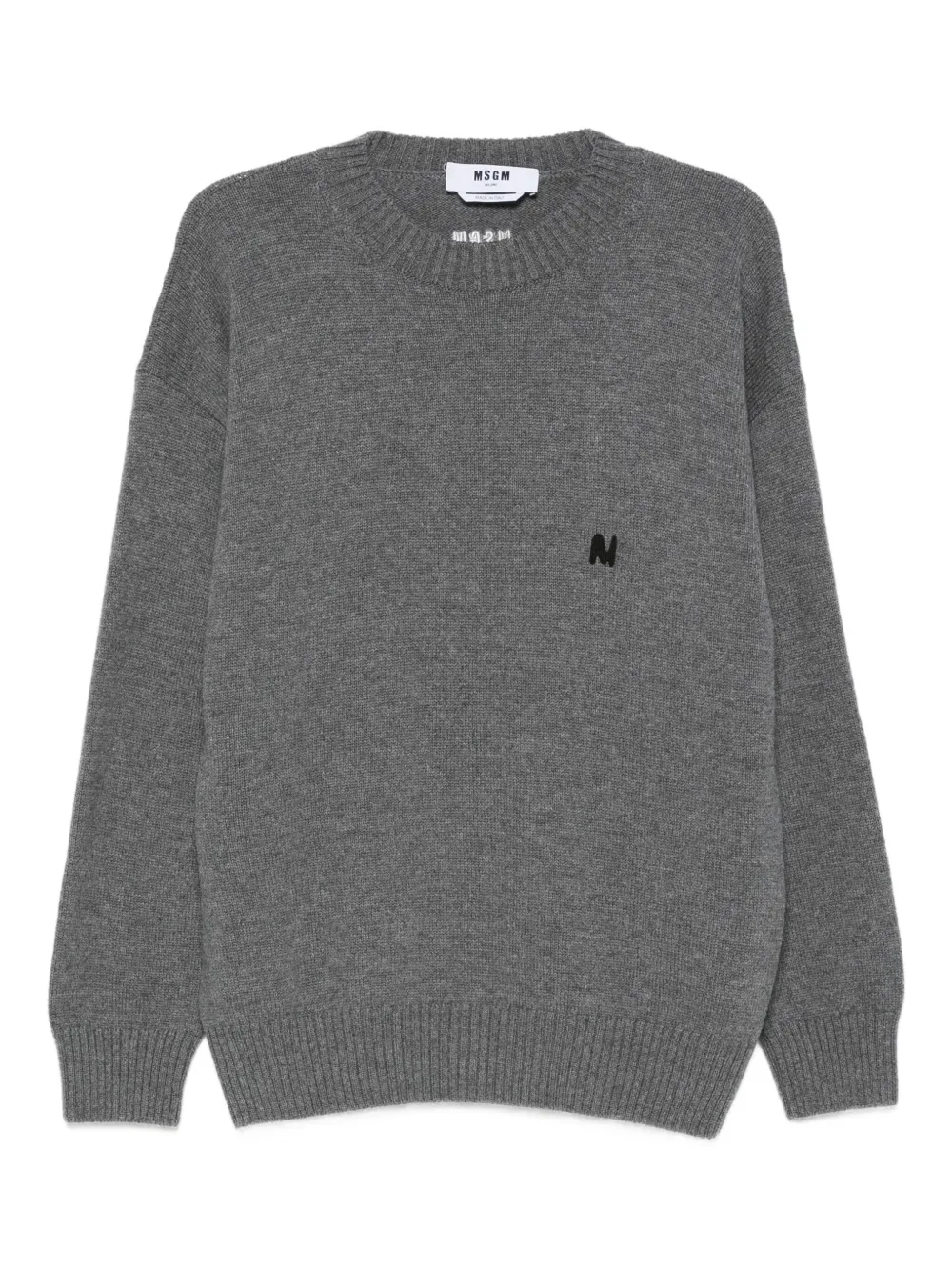 Шерстяной свитер с вышитым логотипом Msgm, серый