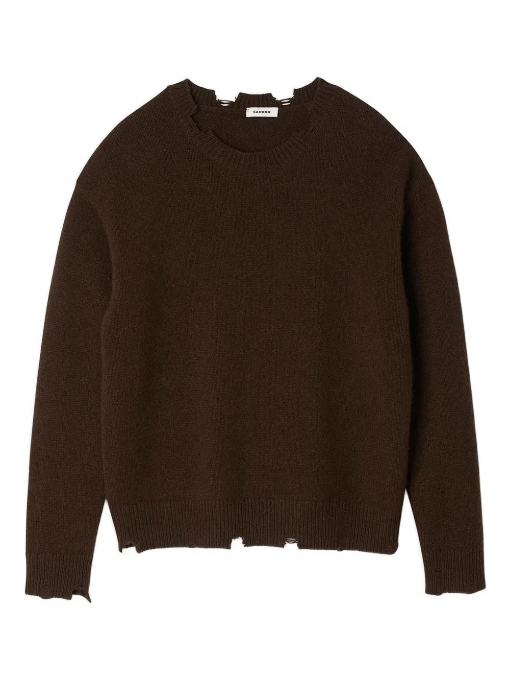 Шерстяной свитер с бахромой Sandro, коричневый 27 474₽