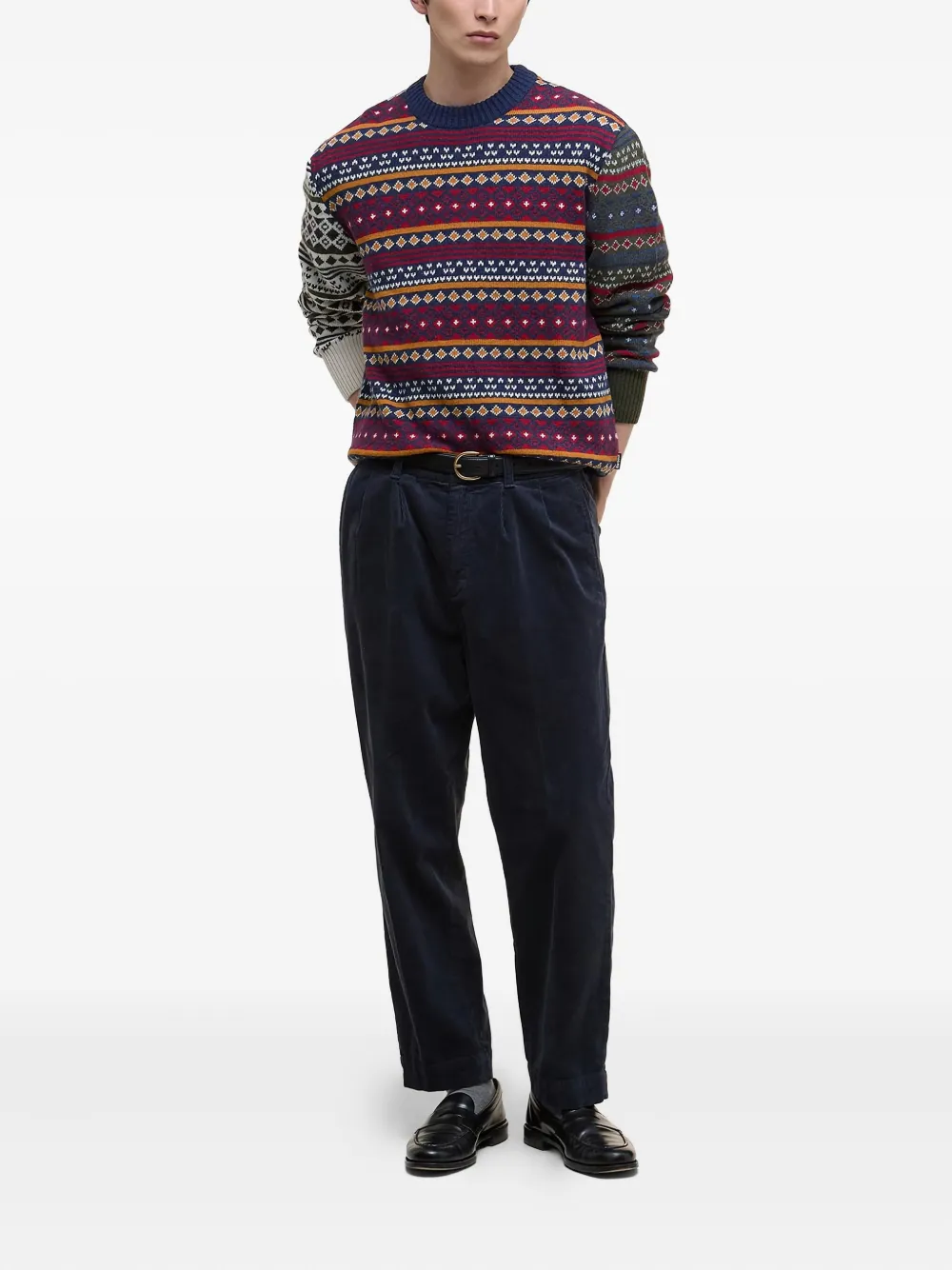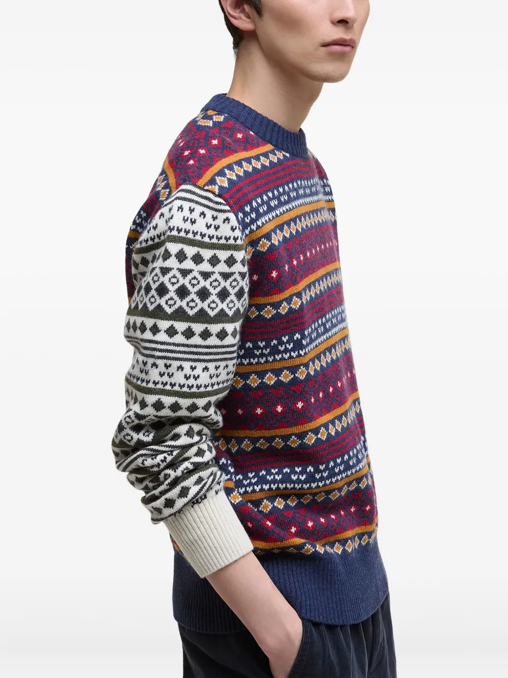 Темно-синий джемпер с узором в стиле фэйр-Айл, шерсть, ребристые манжеты, круглый вырез, рукава с узором