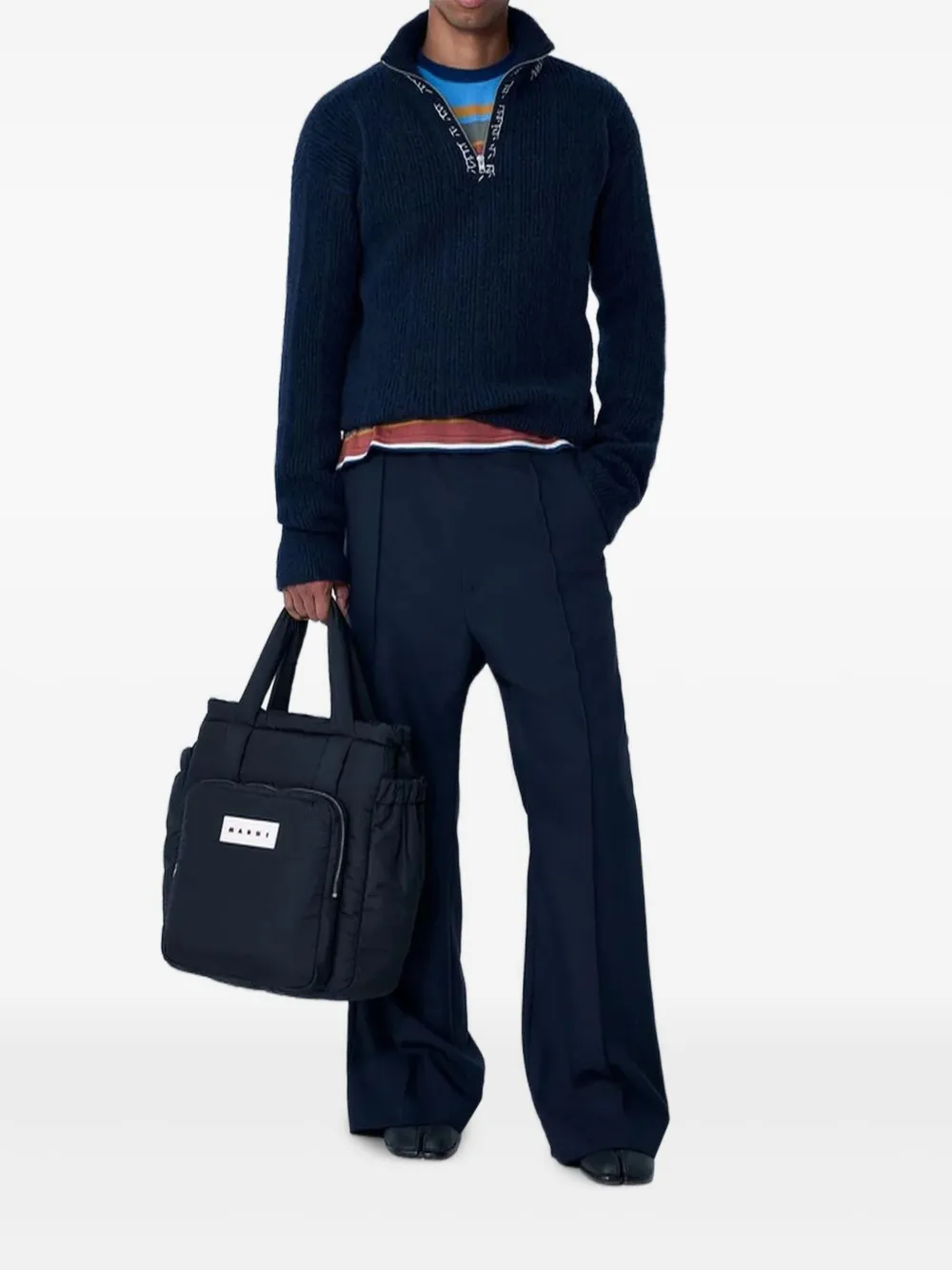 Свитер в рубчик с вышитым логотипом Marni, синий 76 867₽