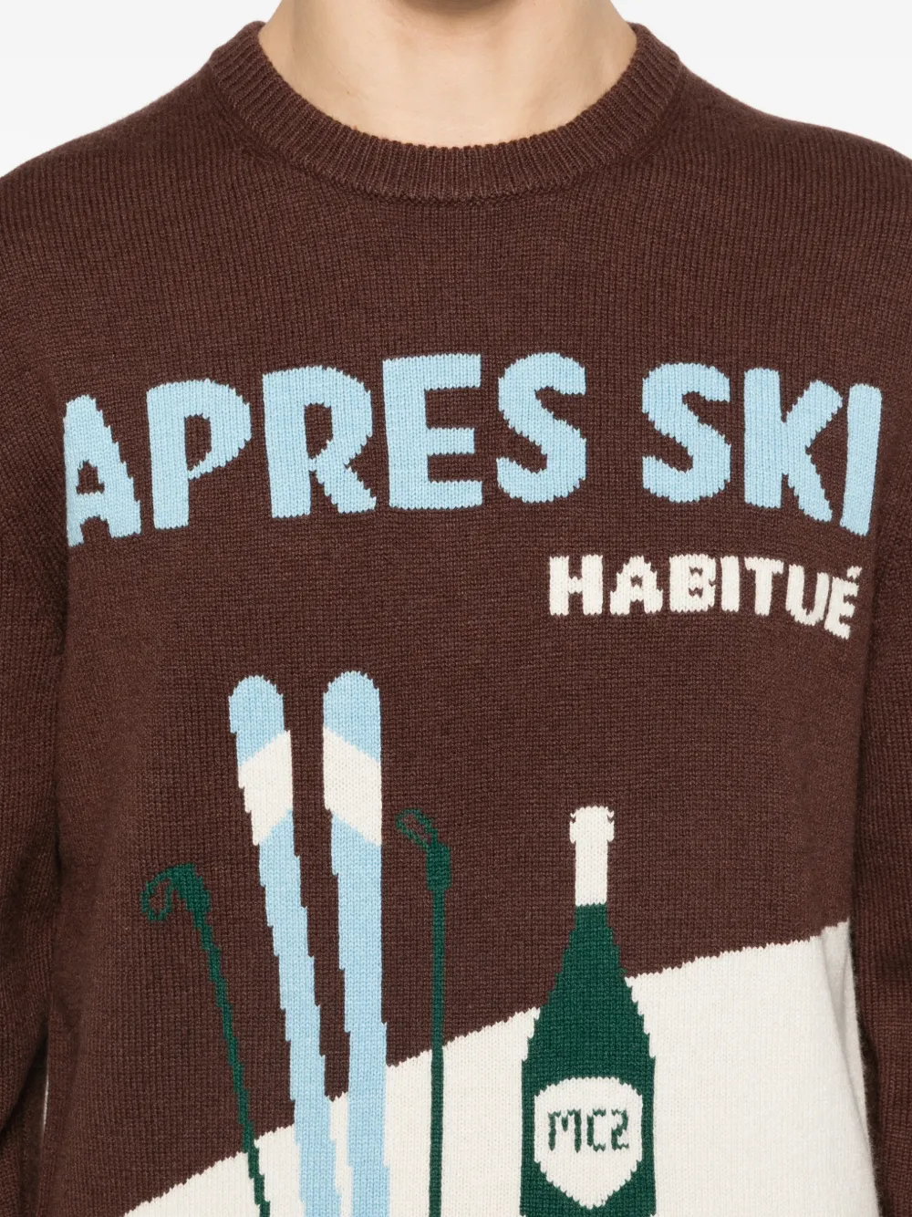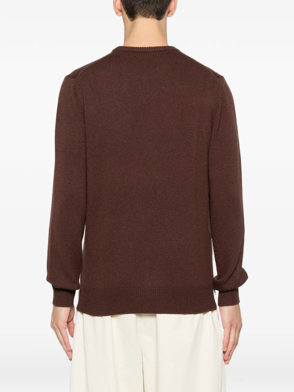 Коричневый джемпер с узором интарсия, круглым вырезом, длинными рукавами, ребристой отделкой и вышитым логотипом