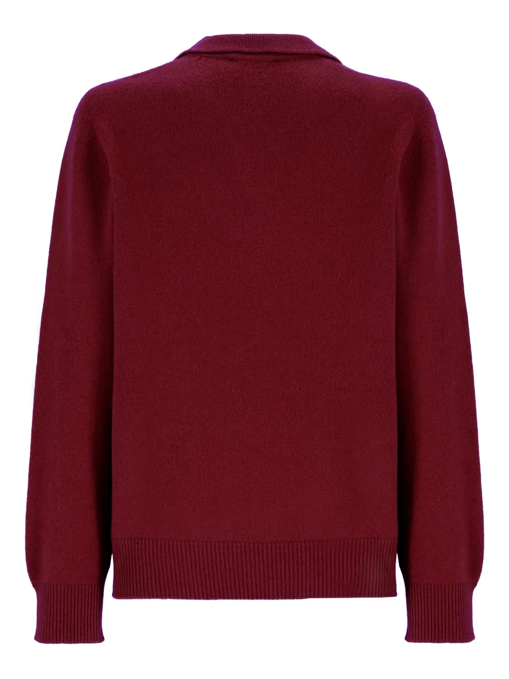 Бордовый V-образный вырез, длинные рукава, ребристые край и манжеты