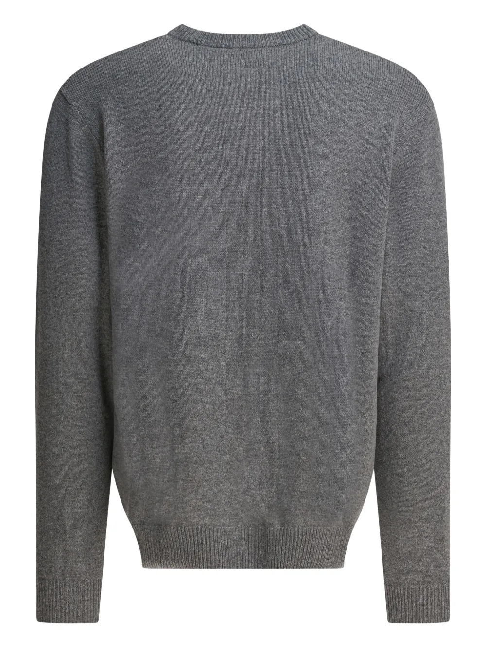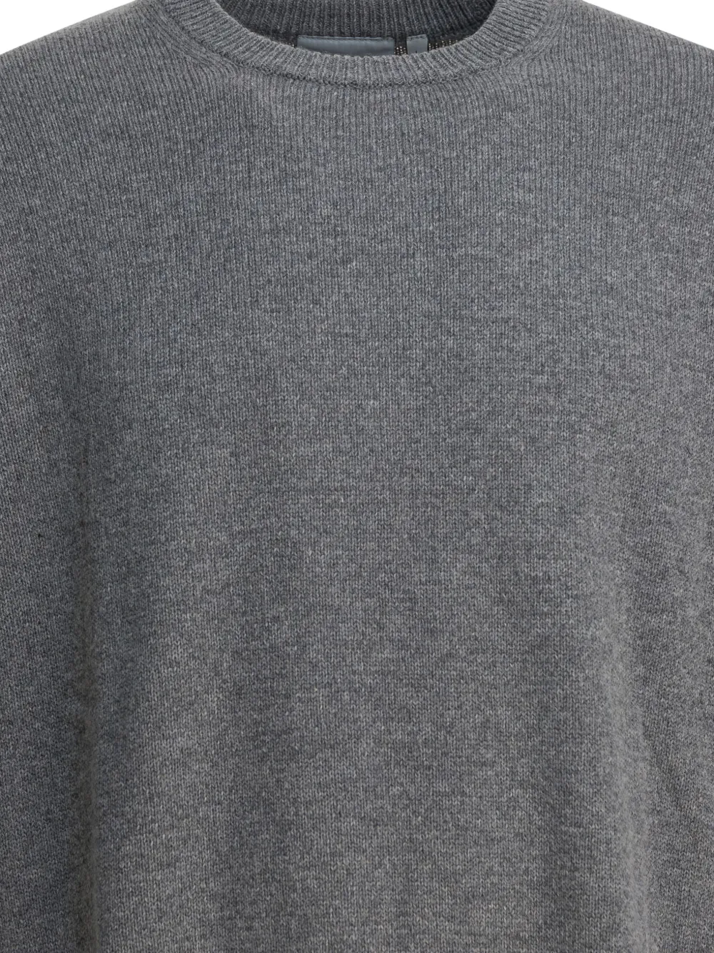 Серый в рубчик, круглый вырез, длинные рукава, ребристые манжеты и нижний край