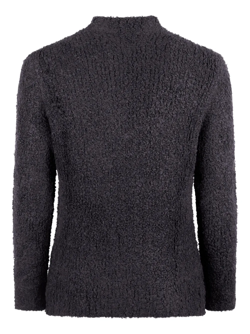 Антрацитовый фактурный трикотаж с воротником-стойкой и длинными рукавами