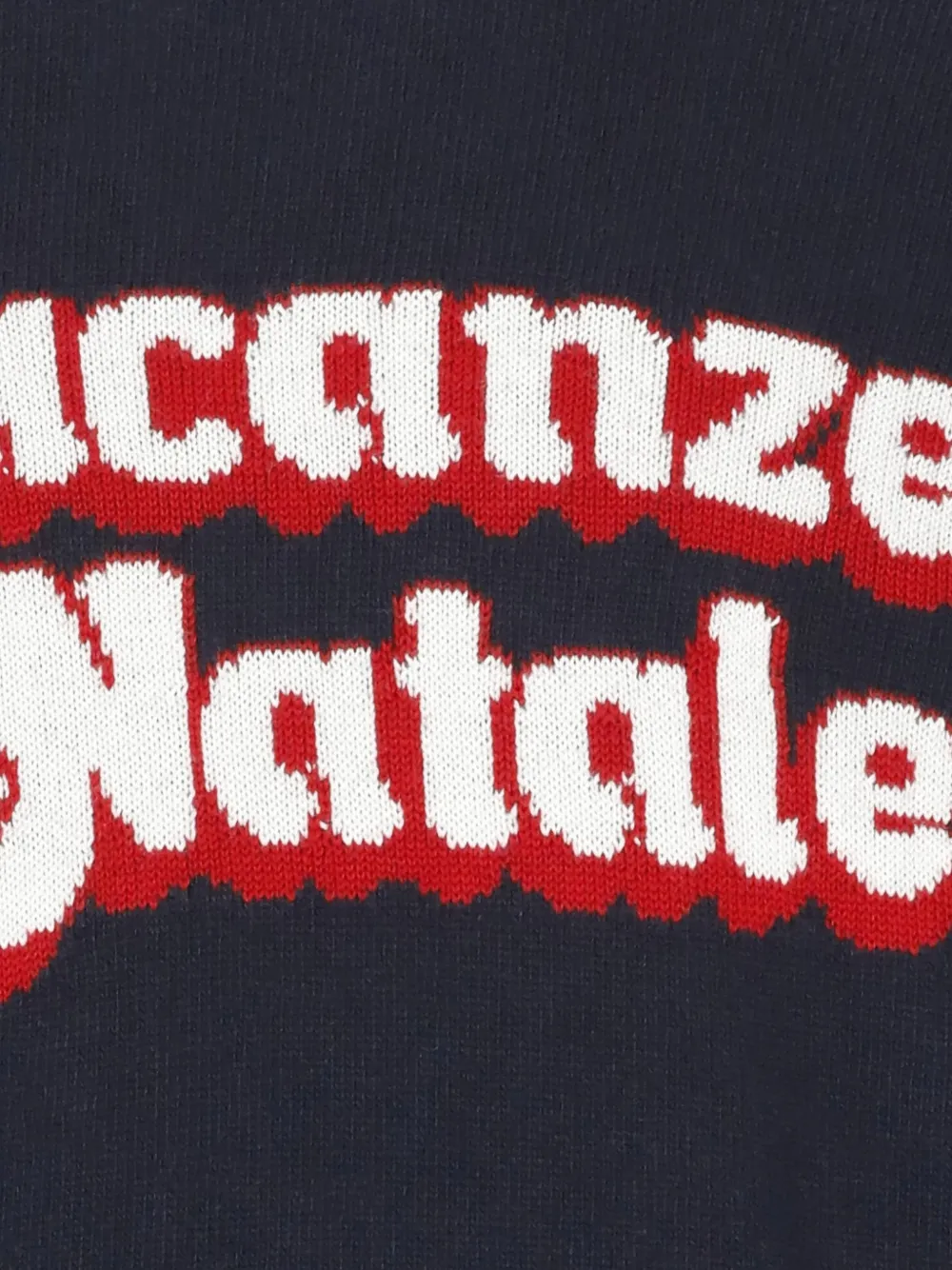 Темно-синий джемпер с круглым вырезом, длинными рукавами и интарсией с надписью