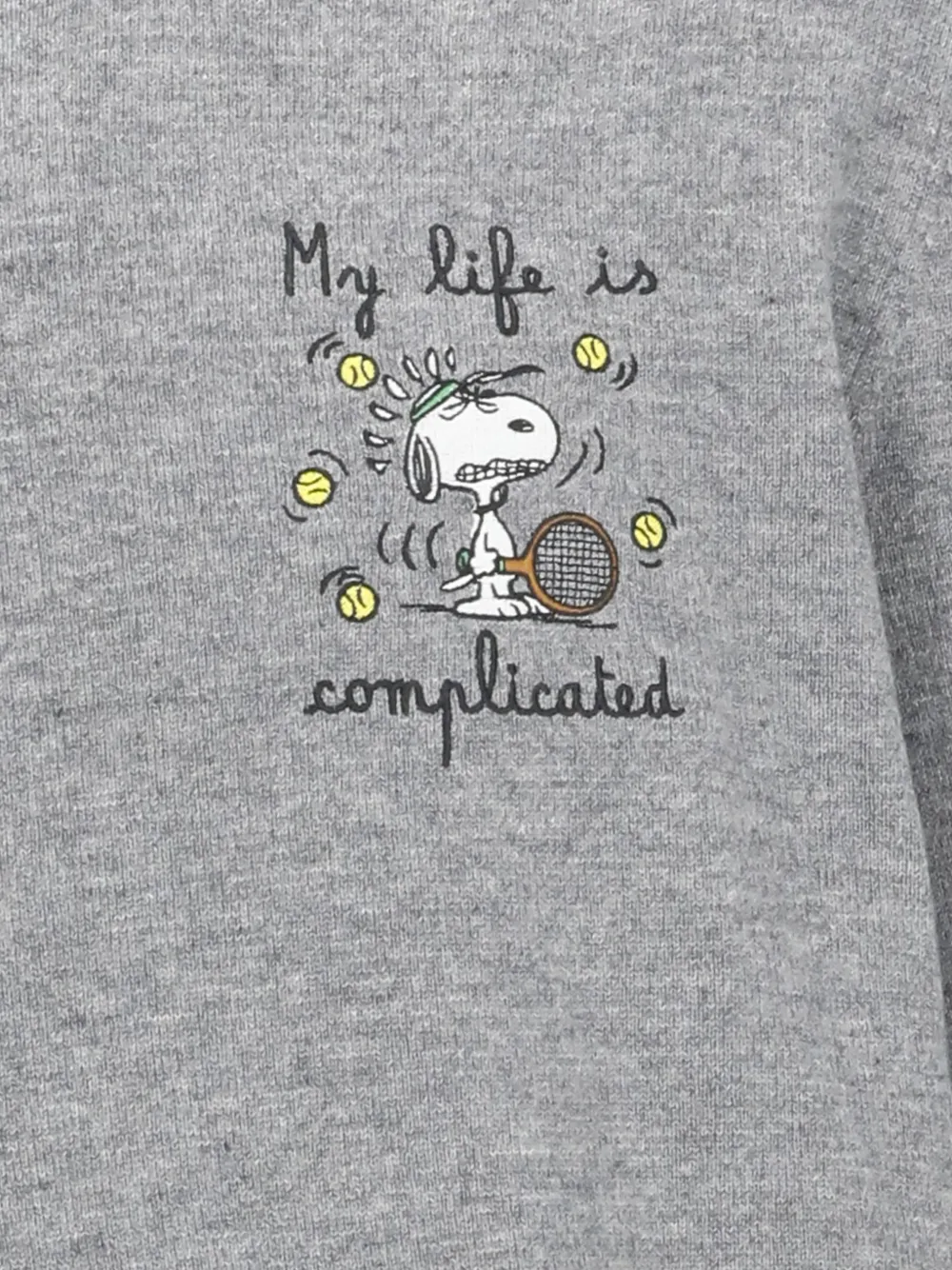 Серый джемпер с круглым вырезом, длинными рукавами, деталями с Снупи и вышитыми буквами
