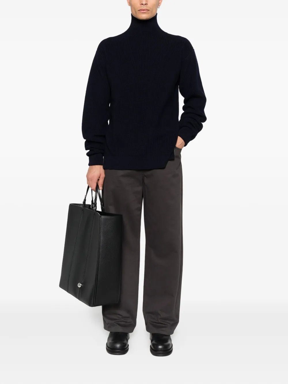 Свитер в рубчик с высоким воротником Jil Sander+, синий