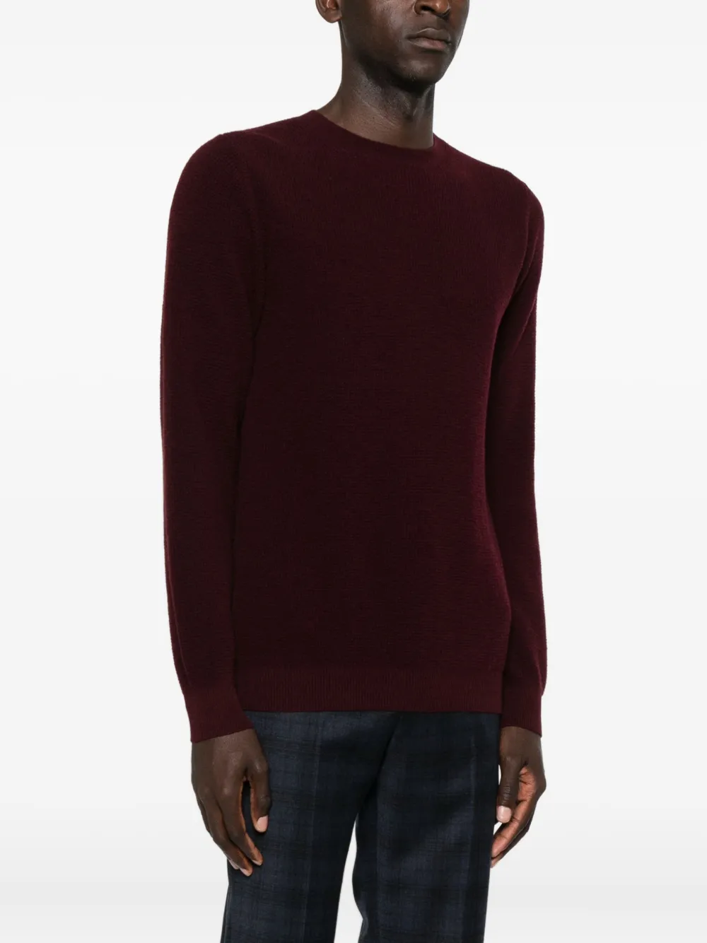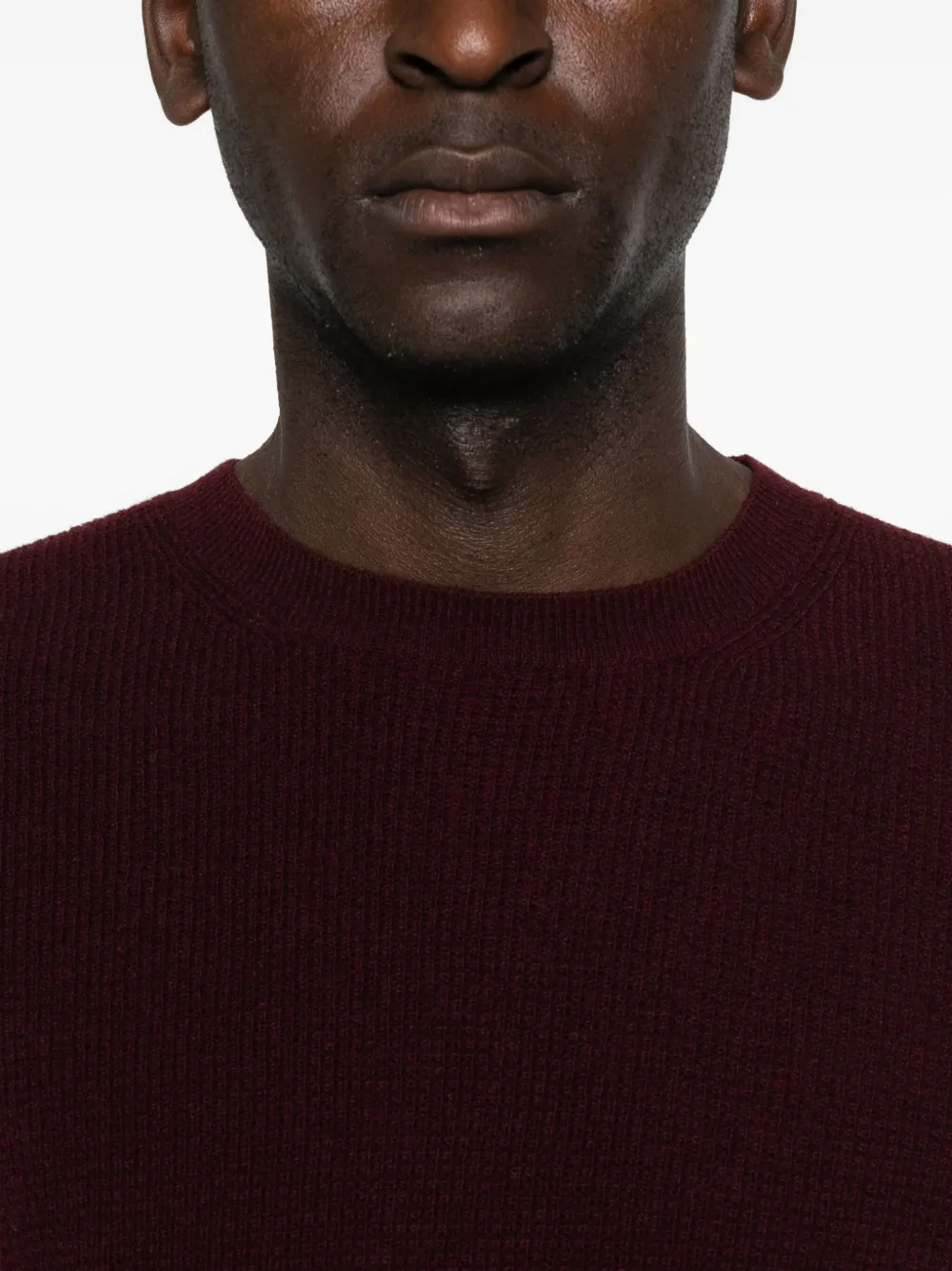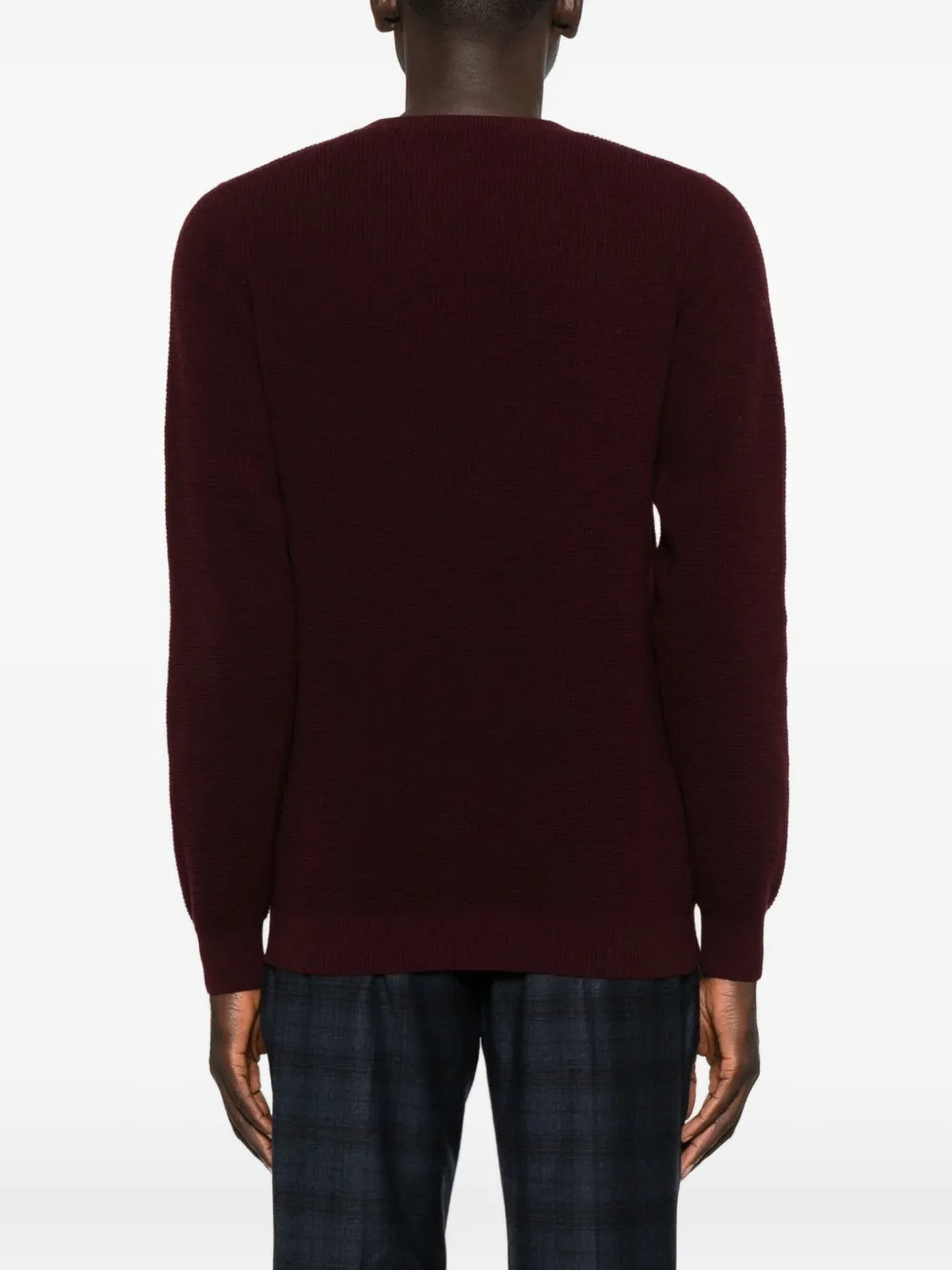 Бордовый фактурная вязка круглый вырез длинные рукава ребристые низ и манжеты