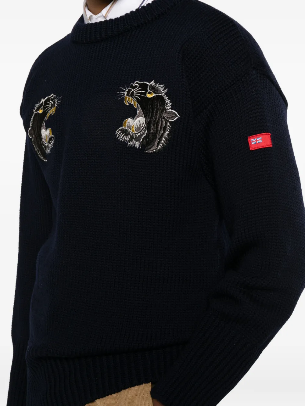 Свитер с круглым вырезом и вышивкой Junya Watanabe Man, синий