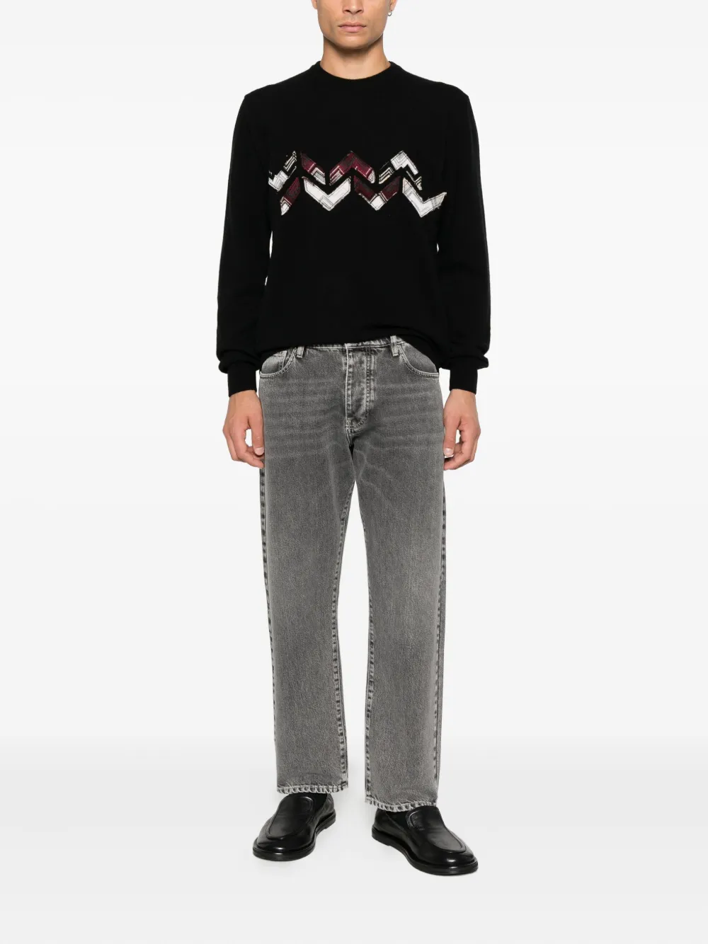 Шерстяной свитер с узором зигзаг Missoni, черный
