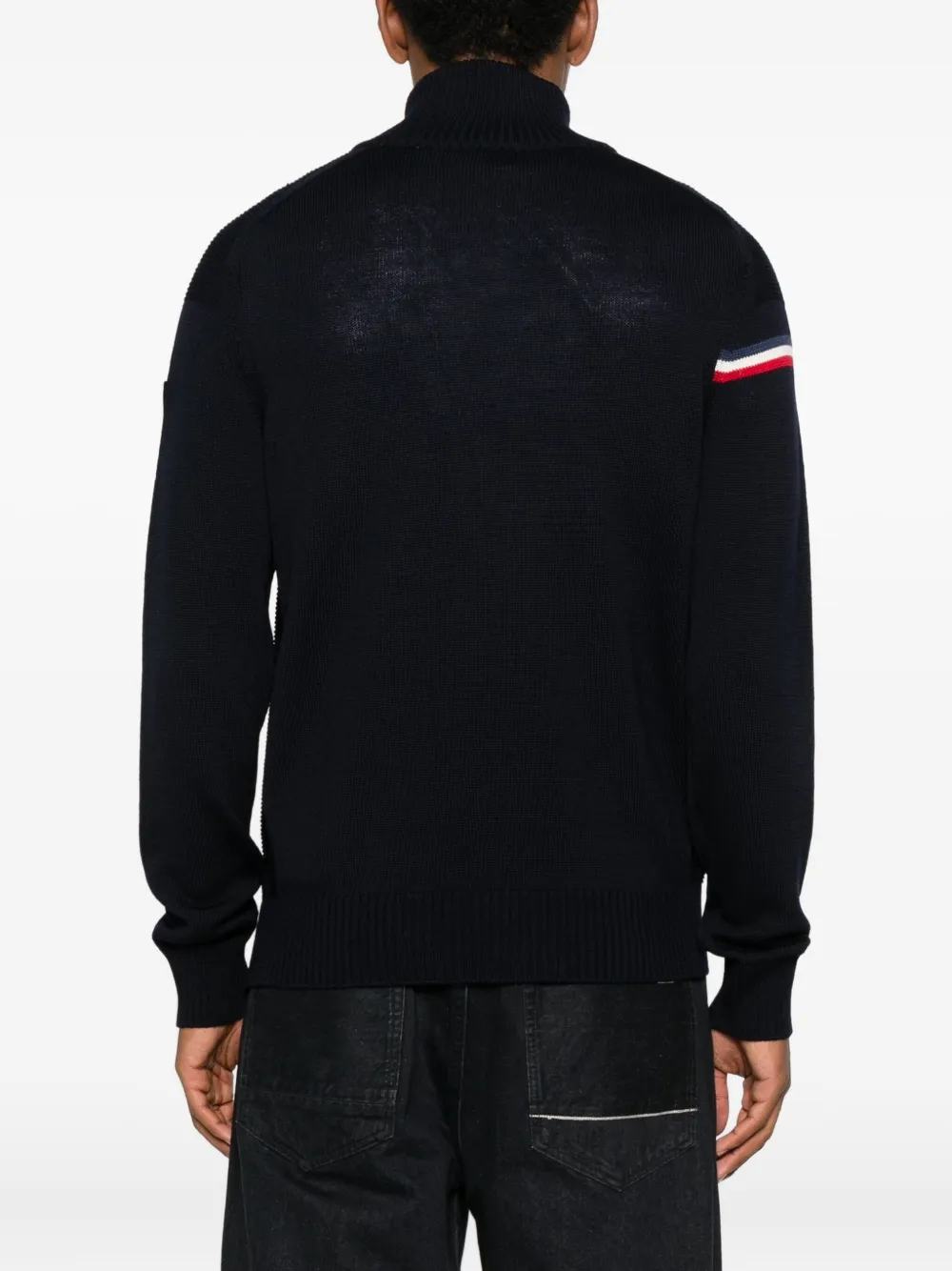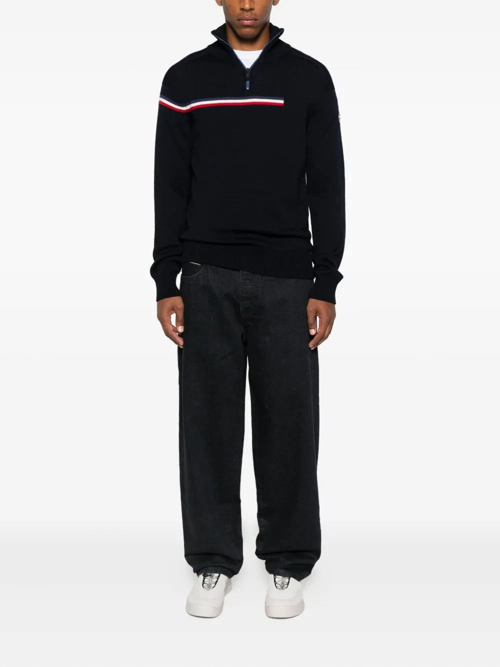 Темно-синий застежка на молнии до середины рубчатые манжеты полосатый декор нашивка с логотипом шерсть мериноса
