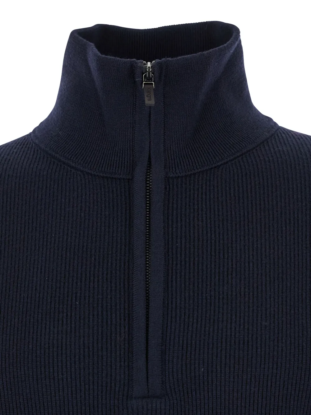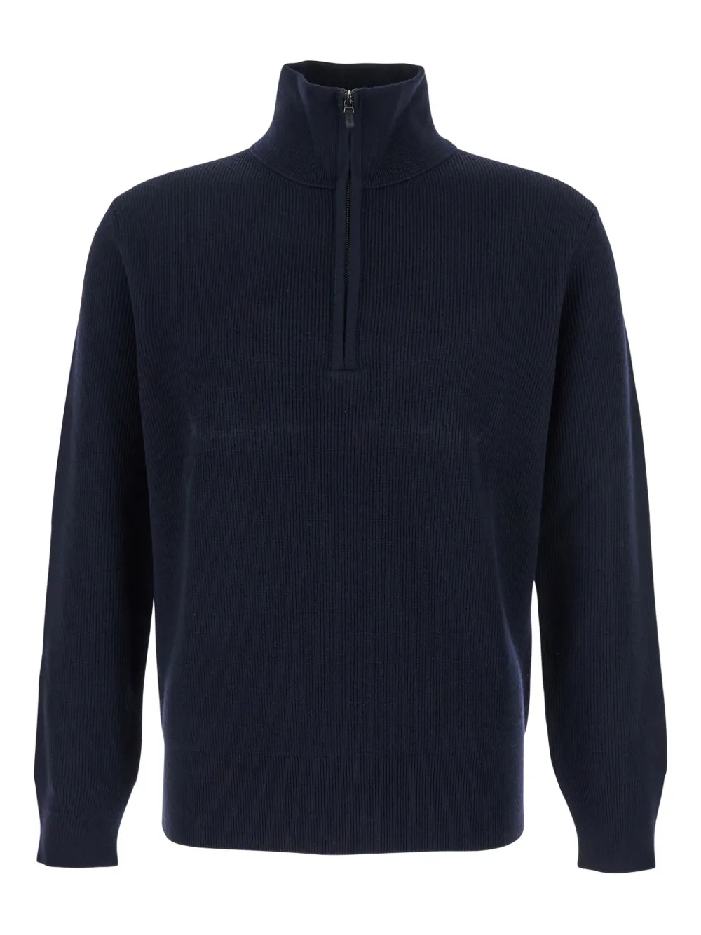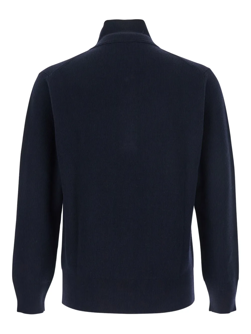 Темно-синий застежка на половине молнии высокий ворот длинные рукава