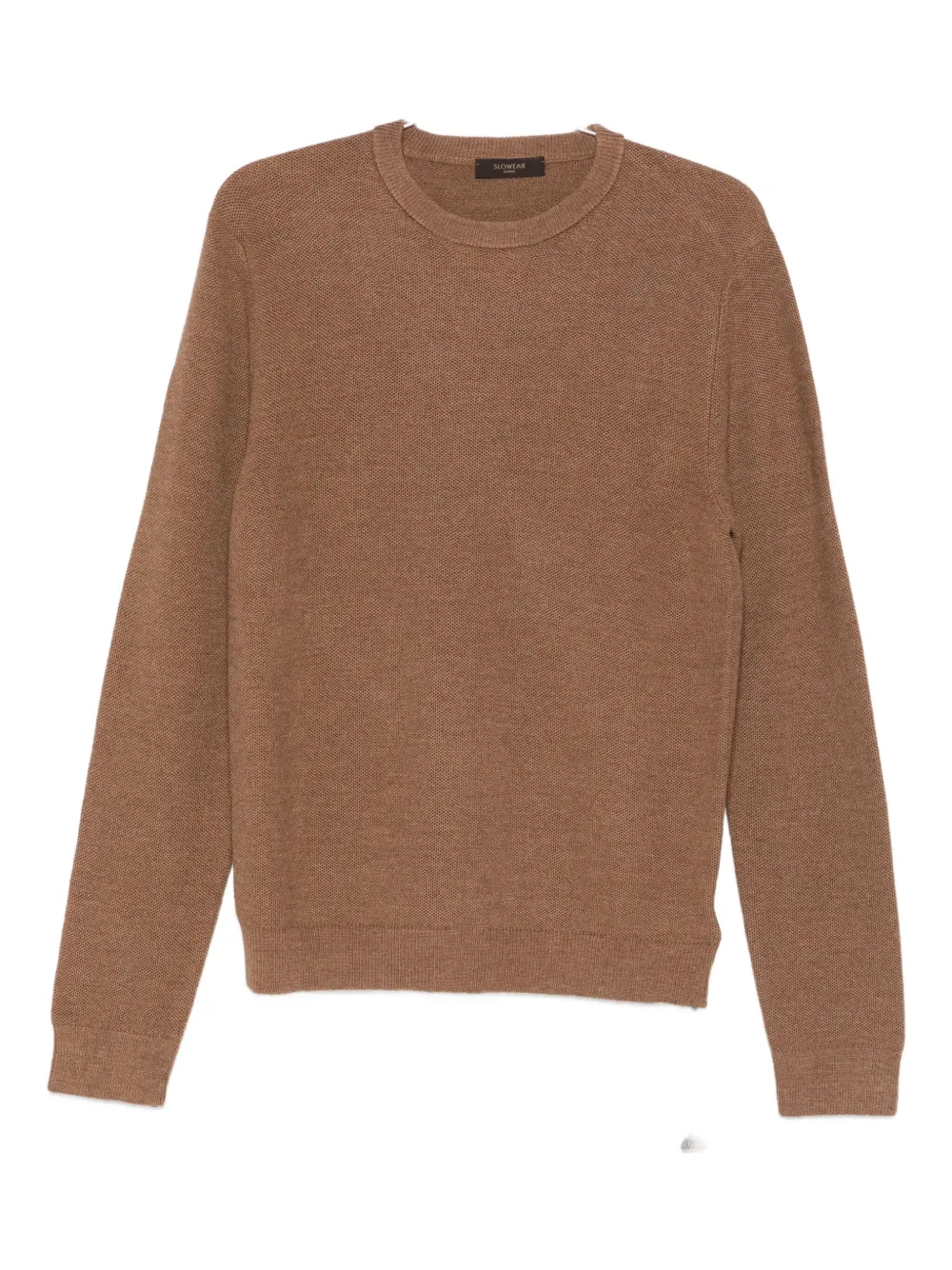 Коричневый джемпер с круглым вырезом, длинными рукавами и вязаной фактурой