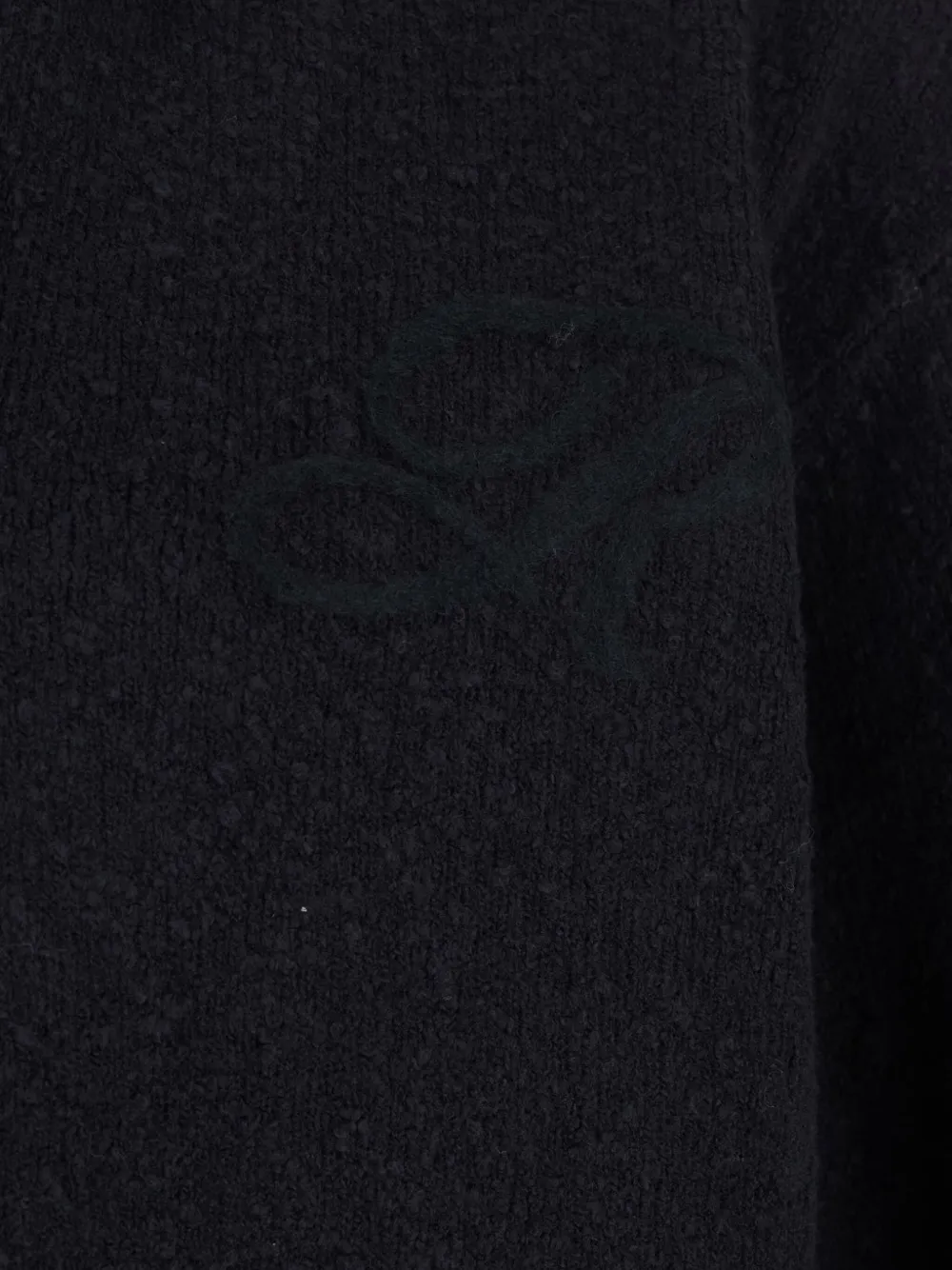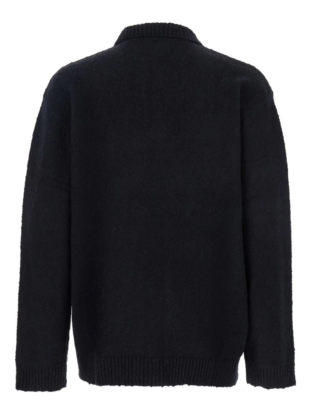 Черная фактурная вязаная рубашка-поло с вышитым логотипом, воротником, длинными рукавами и ребристым краем