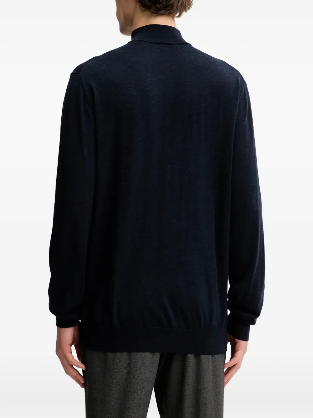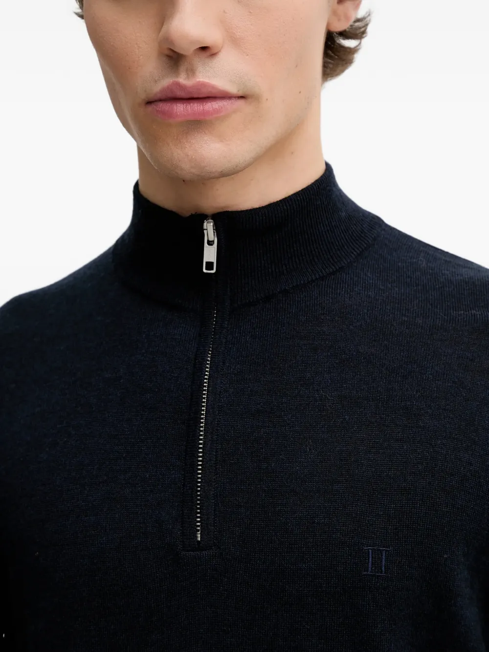 Темно-синий полу-молния, воротник-стойка, длинные рукава, вышитый логотип
