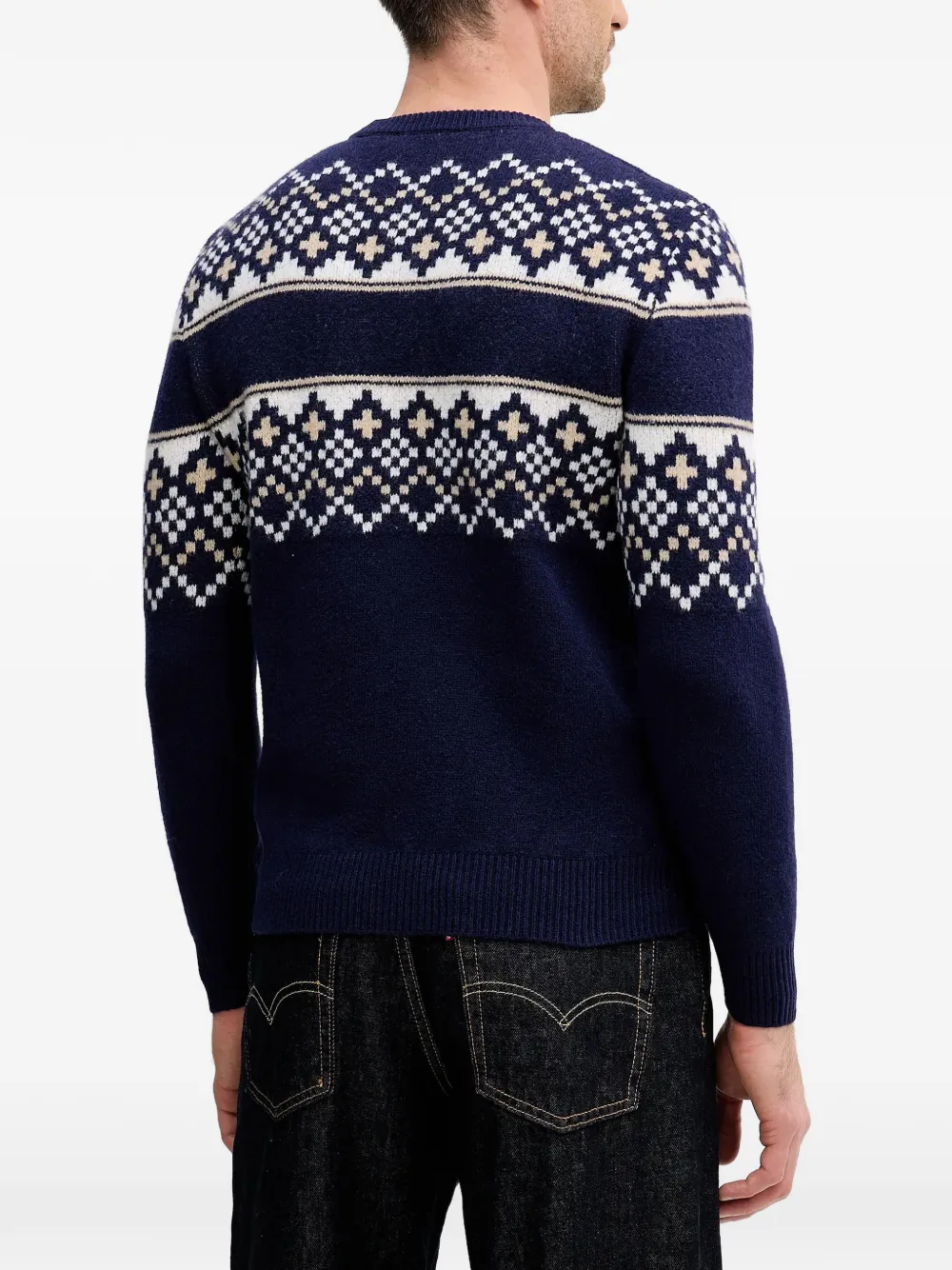 Темно-синий джемпер в технике "fair isle" с круглым вырезом, длинными рукавами, ребристым низом и манжетами