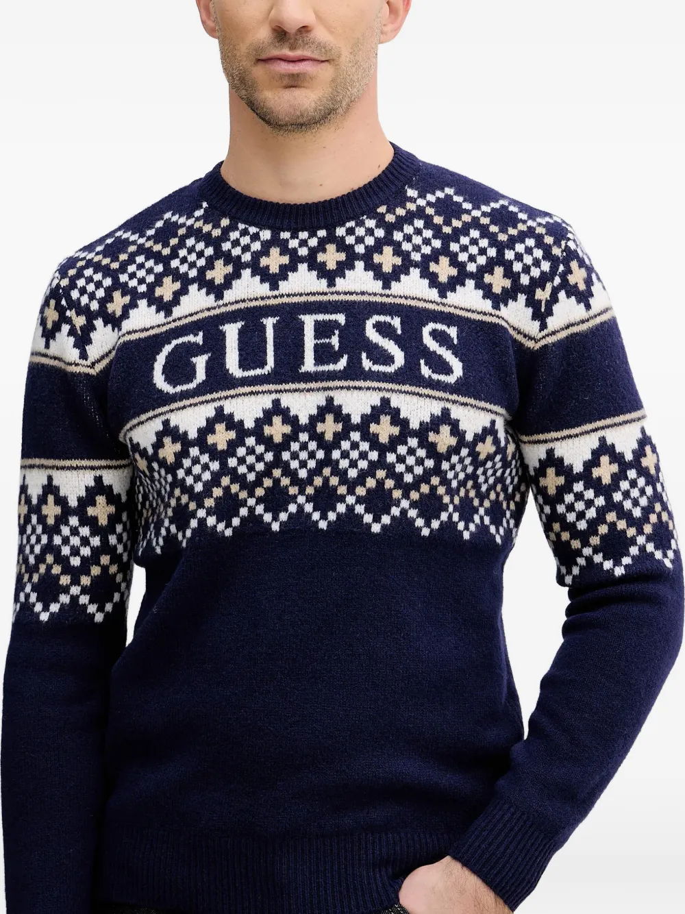 Джемпер с круглым вырезом в технике "фэр-айл" Guess Usa, синий