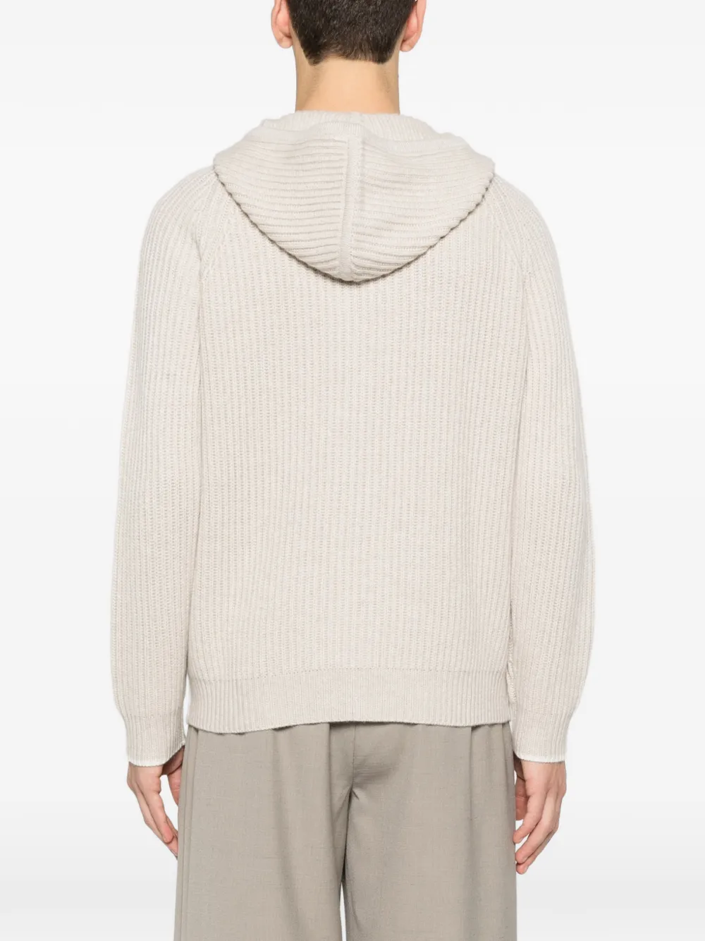 Кремовый вязаный худи с длинными рукавами, застежкой-молнией и ребристым краем