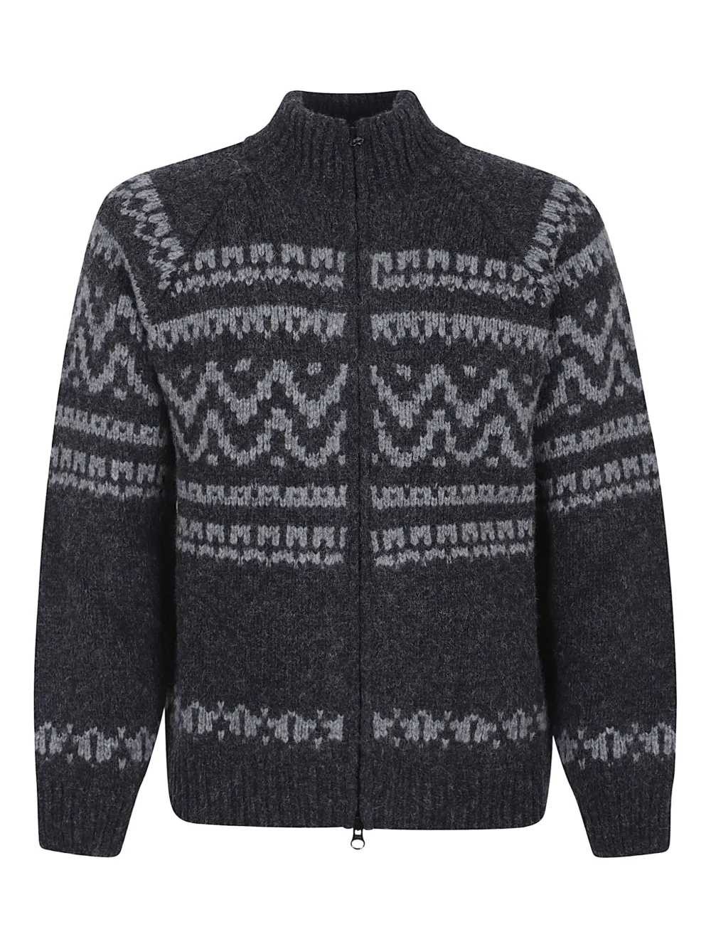 Темно-серый свитер с высоким воротом, застежкой-молнией и длинными рукавами