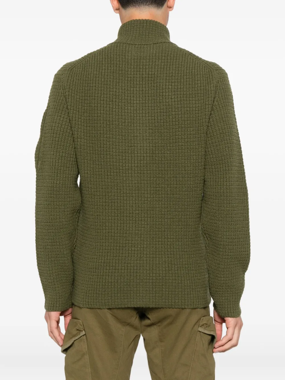 Кардиган в рубчик на молнии C.P. Company, зеленый