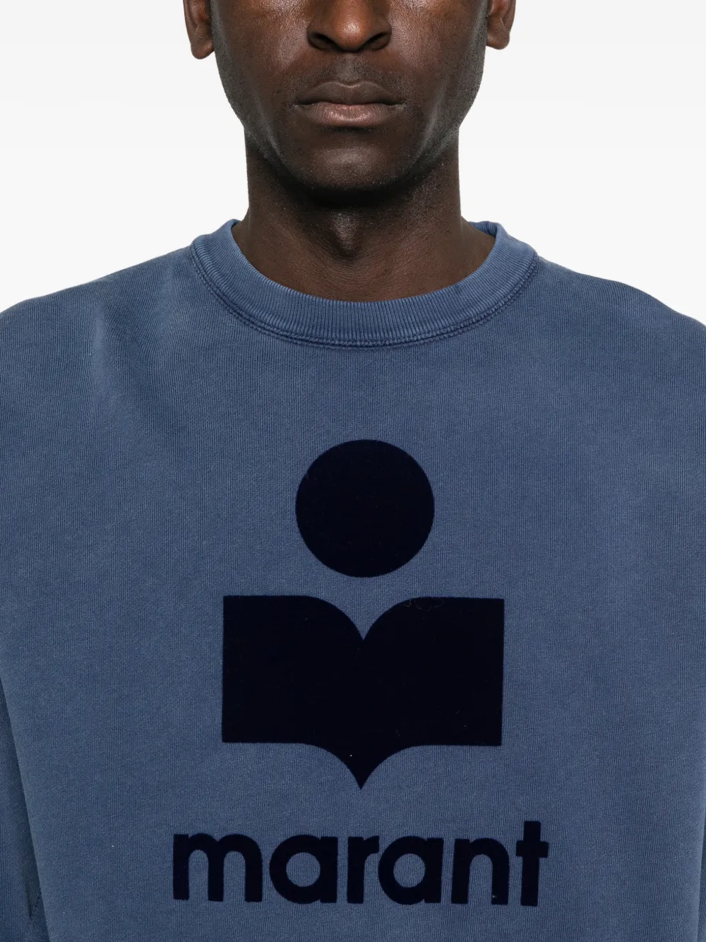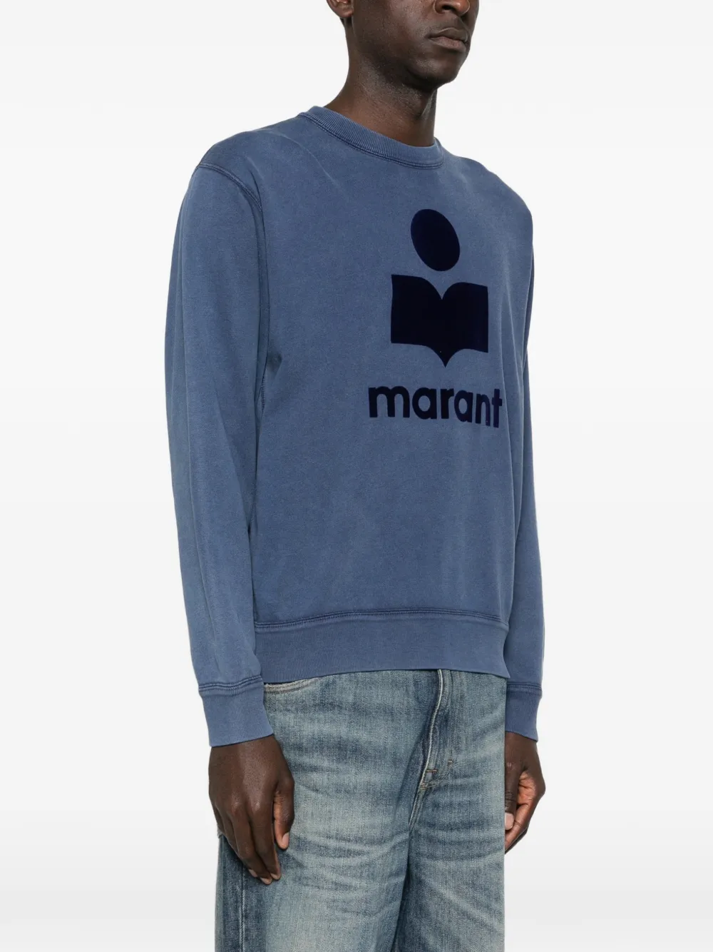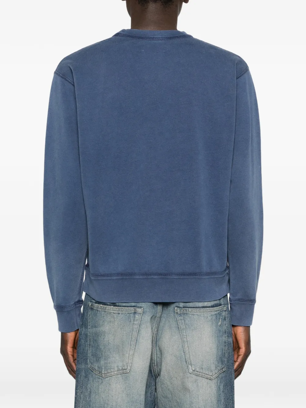 Индиго с флокированным логотипом, круглый вырез, длинные рукава, ребристые манжеты, ребристый низ