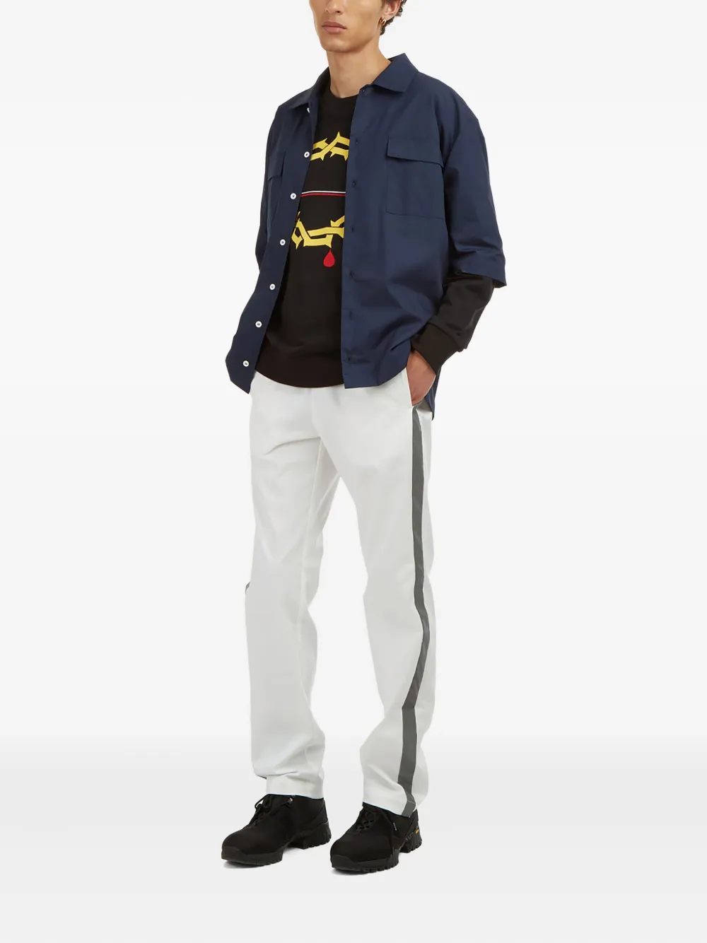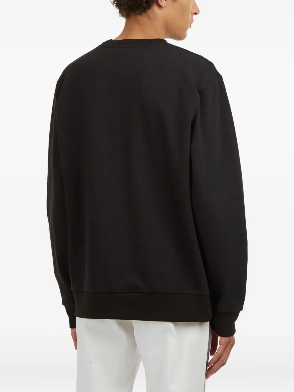 Черный графический принт круглый вырез длинные рукава воротник, манжеты и край в рубчик
