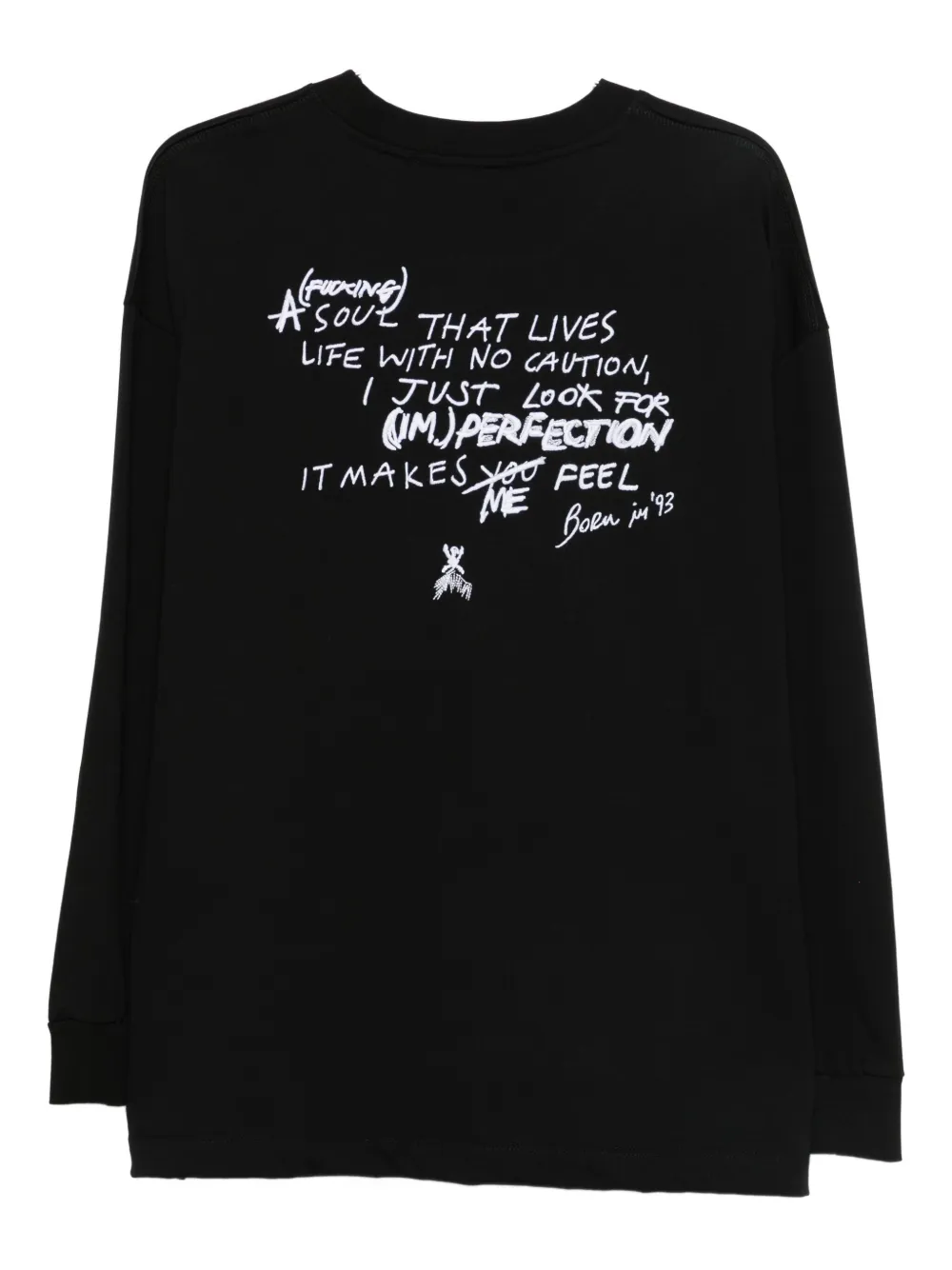 Черная хлопковая футболка с длинными рукавами, круглый вырез, принт на спине