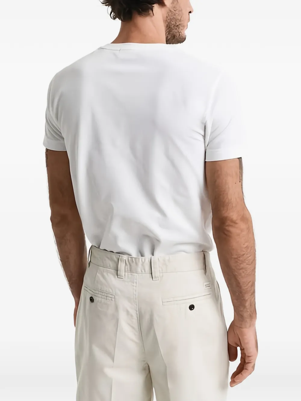 Белая футболка с короткими рукавами, круглым вырезом и логотипом
