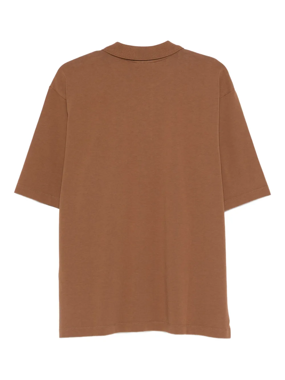 Коричневая хлопковая футболка-поло с вышитым логотипом, короткими рукавами и застежкой на пуговицы