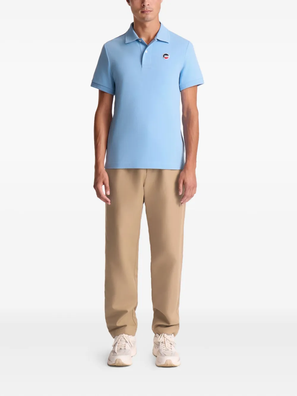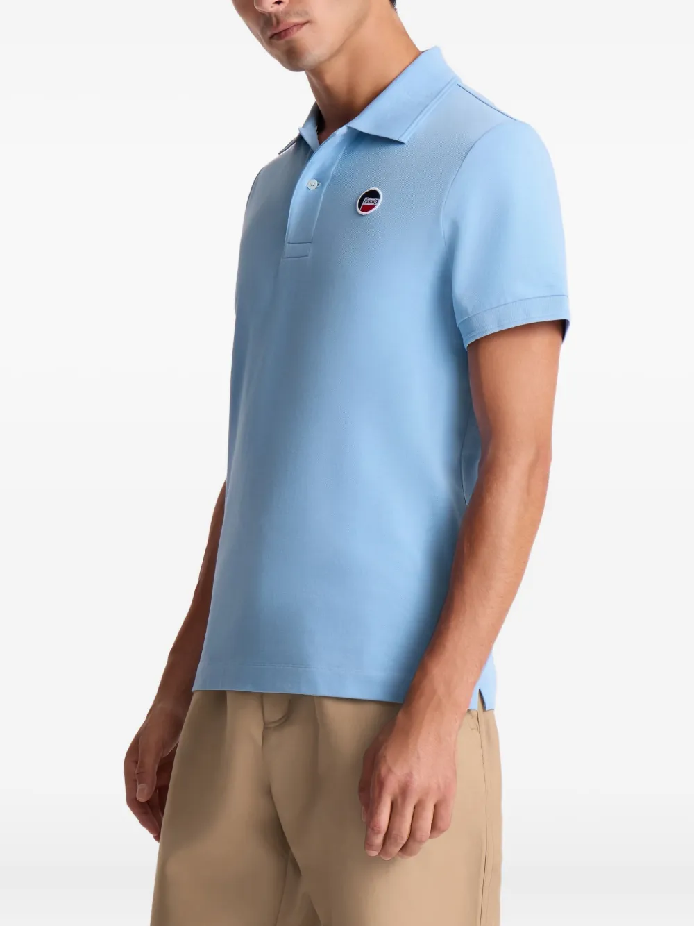 Светло-голубой хлопок планка на пуговицах короткий рукав воротник поло вышитый логотип
